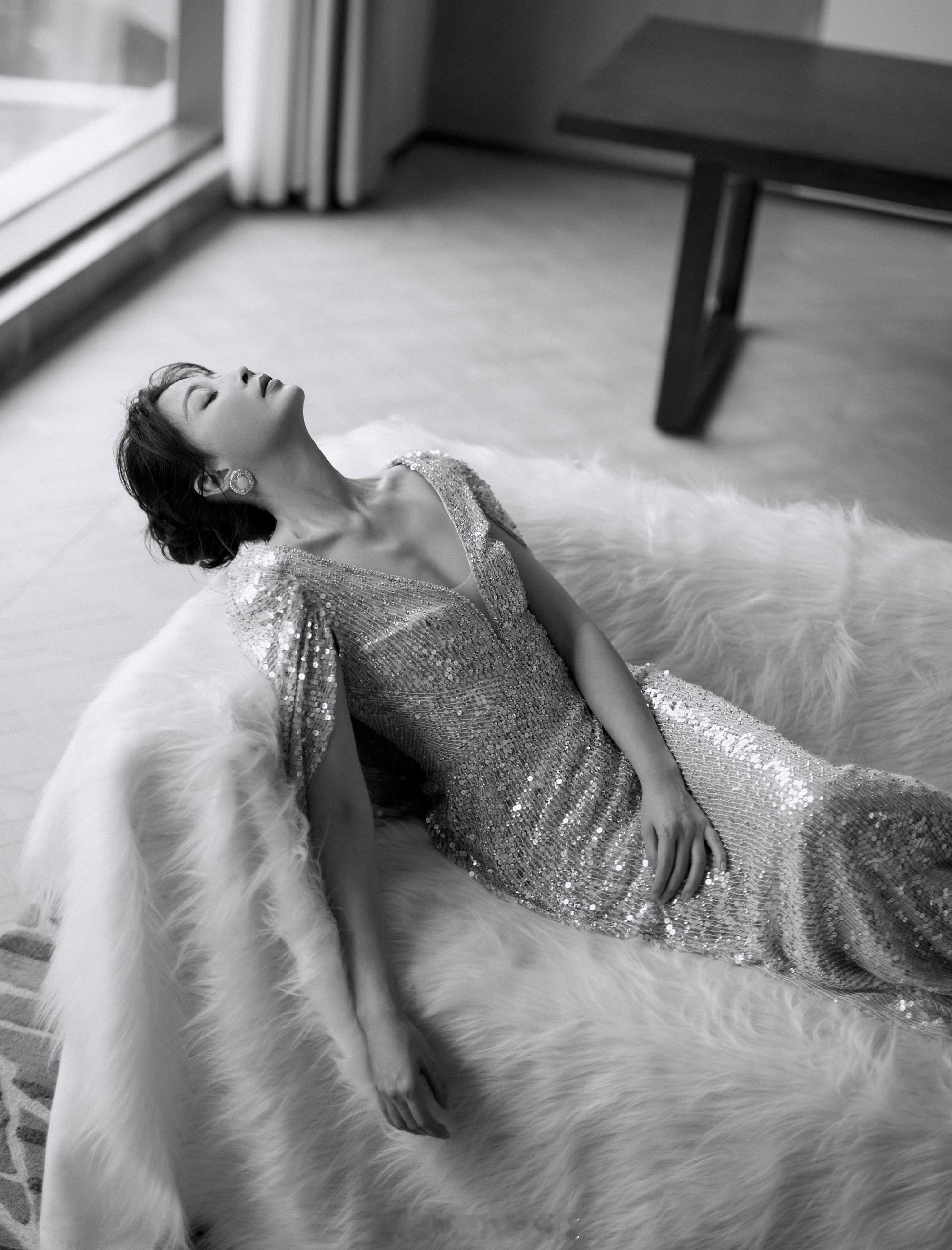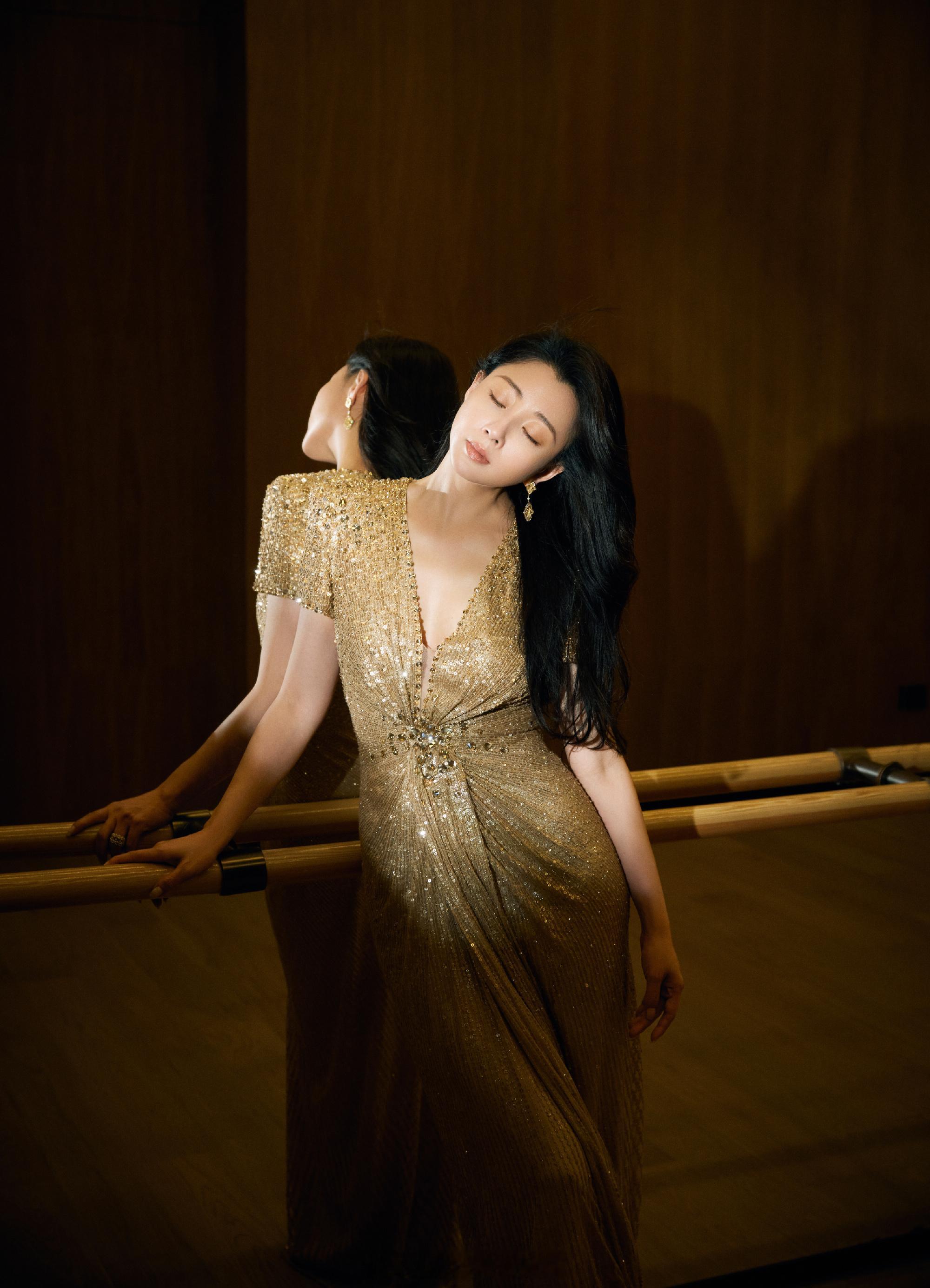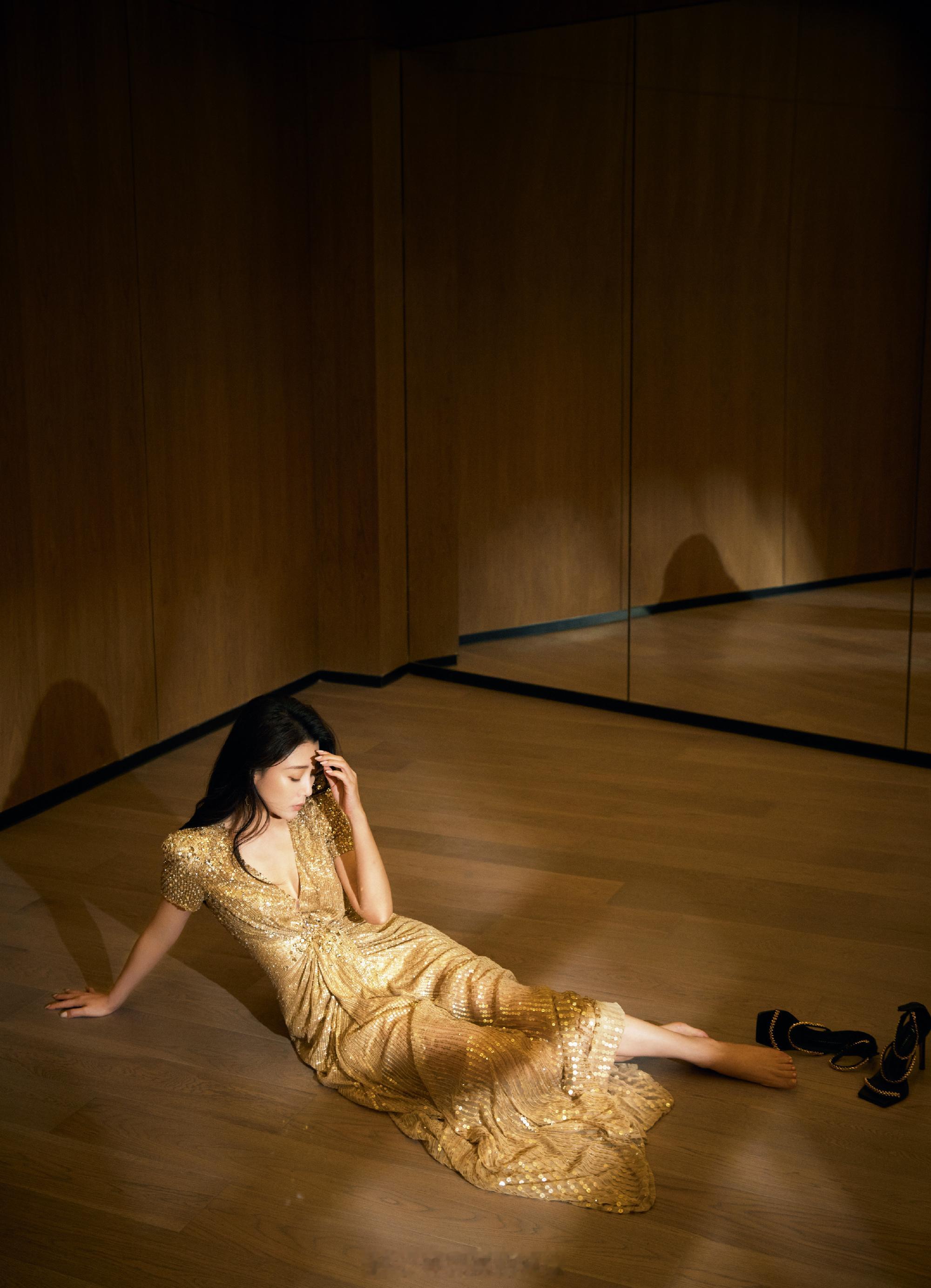 殷桃深鎏金长裙迷人写真
