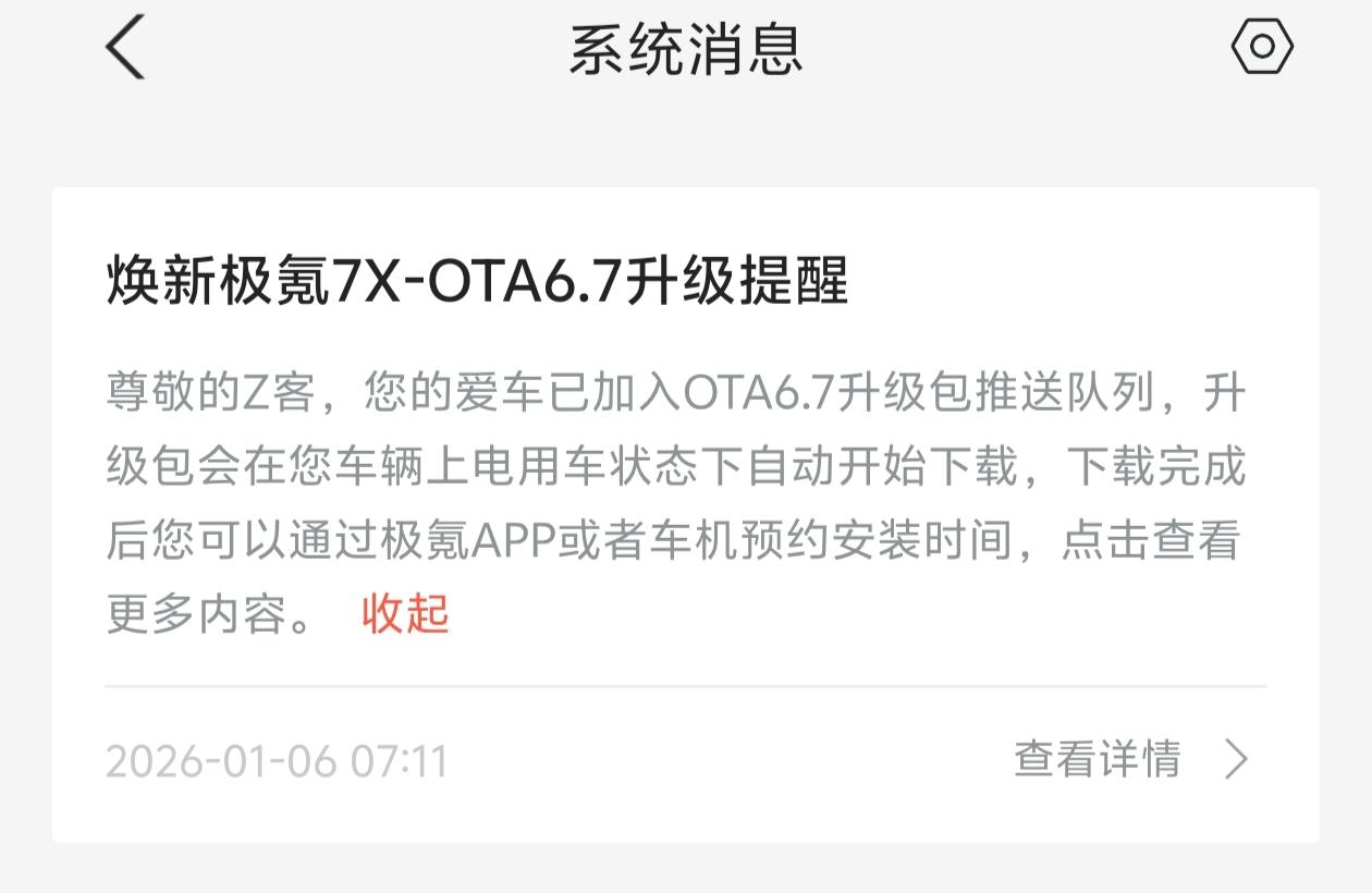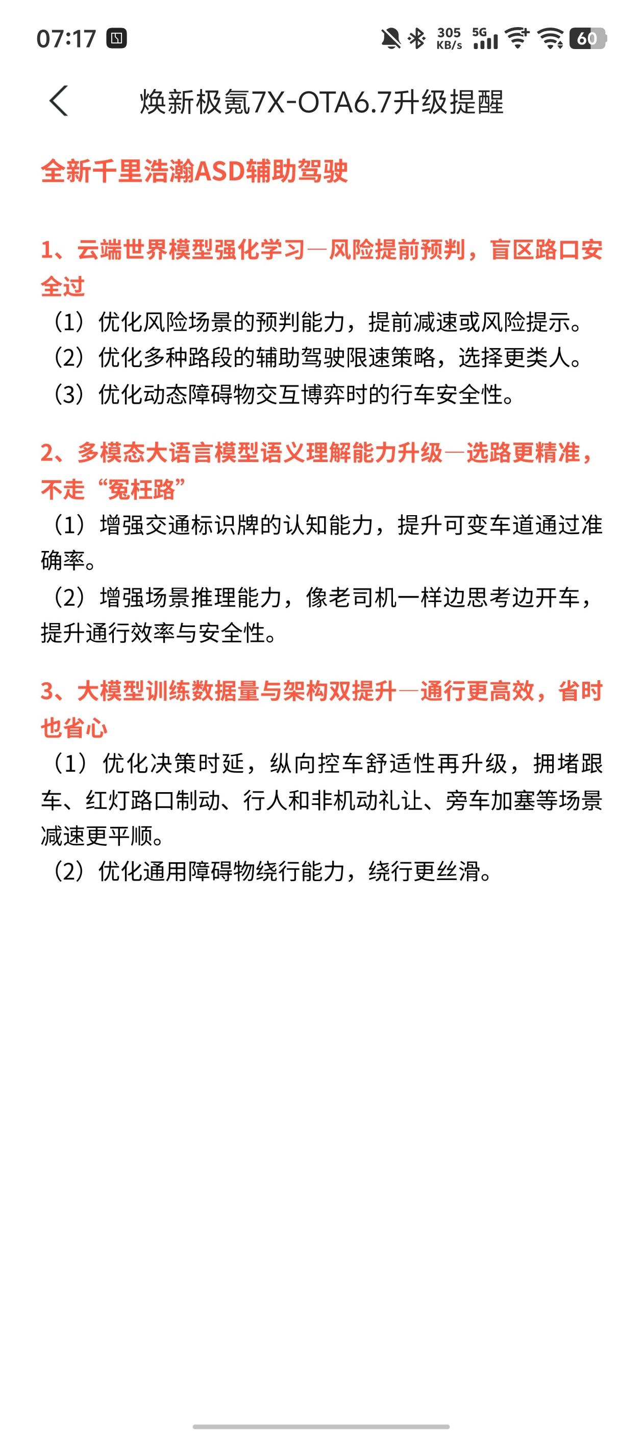 焕新7X OTA6.7 升级提醒来了,看来主要是升级智驾能力!