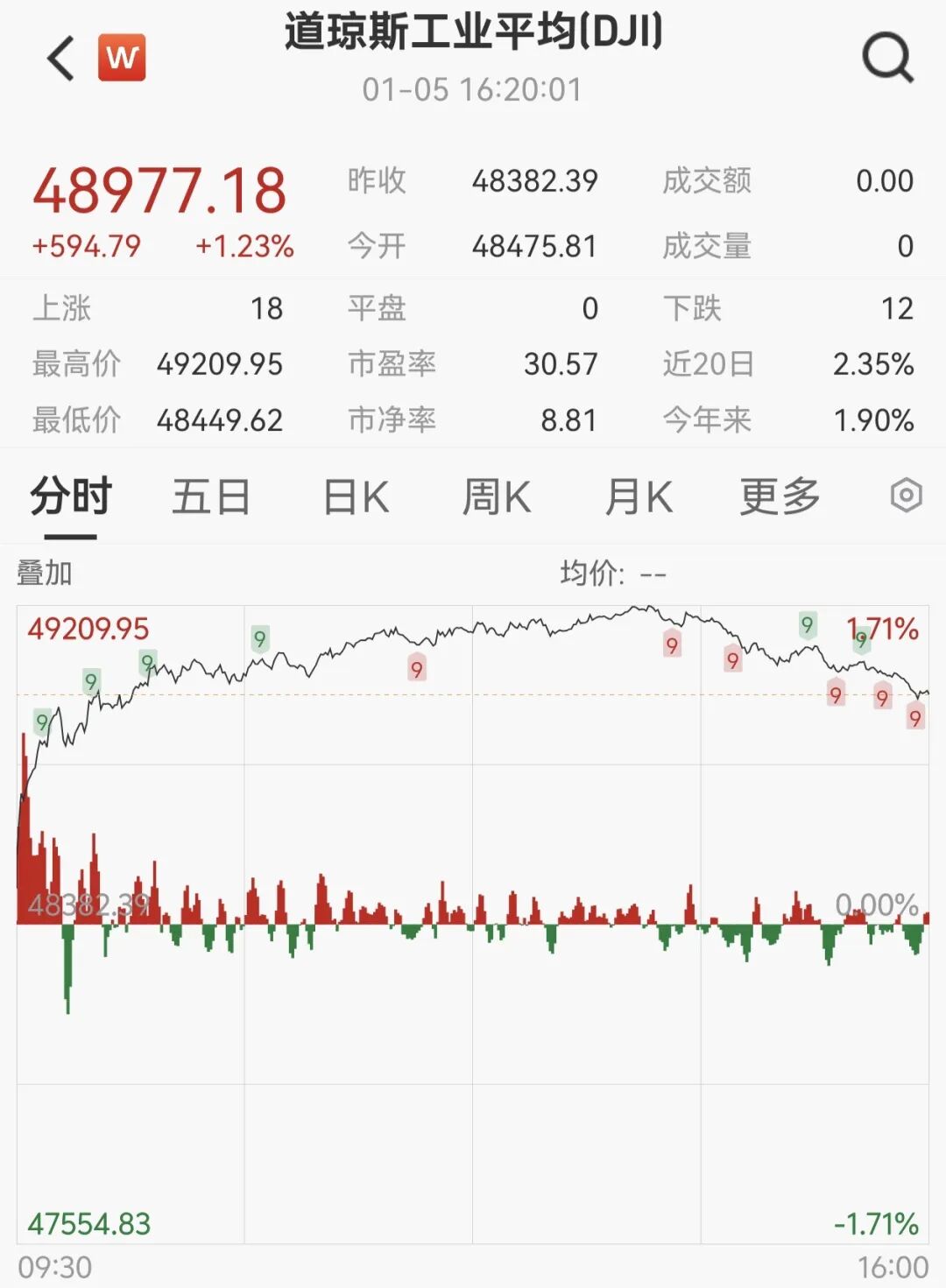 美国三大股指全线收涨,道指涨1.23%,报48977.18点;标普500指数涨0.64%,报6902.05点;纳指涨0.69%,报23395.82点。