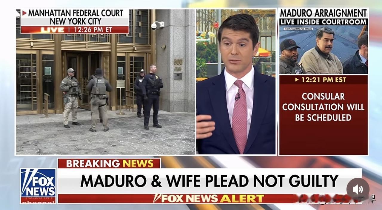 馬杜羅夫婦在美國聯邦法院首次出庭,對毒品、麻醉品恐怖主義和武器指控不認罪。他們會在三月份第二次出庭。 Nicolás Maduro is "very engaged" in the courtroom as he is arraigned on narco-terrorism and weapons charges. FOX News' Benjamin Hall details how Maduro felt like he was "protected" because the Biden administration never acted on indictments against him, failing to anticipate how President Trump would operate differently.