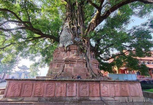 云南芒市的树包塔,堪称大自然与历史交融的奇迹。芒市这座边陲小城,自带东南亚风情与神秘韵味。树包塔景区位于芒市广场,远观平淡无奇,走近却令人叹为观止。 古老的铁城佛塔被菩提树紧紧环抱,粗壮的根系宛如巨蟒缠塔,二者相依相伴已逾两百年。铁城佛塔始建于清康熙年间,因裂缝积尘,种子生根发芽,逐渐演变成如今这般景象。 此地虽身处闹市,却静谧而庄重。古树高耸,枝叶葳蕤,充满无限生机。周围后期修建的四座小塔和异兽守护着它们。此外,树包塔还被称作“爱情塔”,承载着罕伦和岩吞坚贞不渝的爱情故事,着实值得探寻一番。 云南树包塔