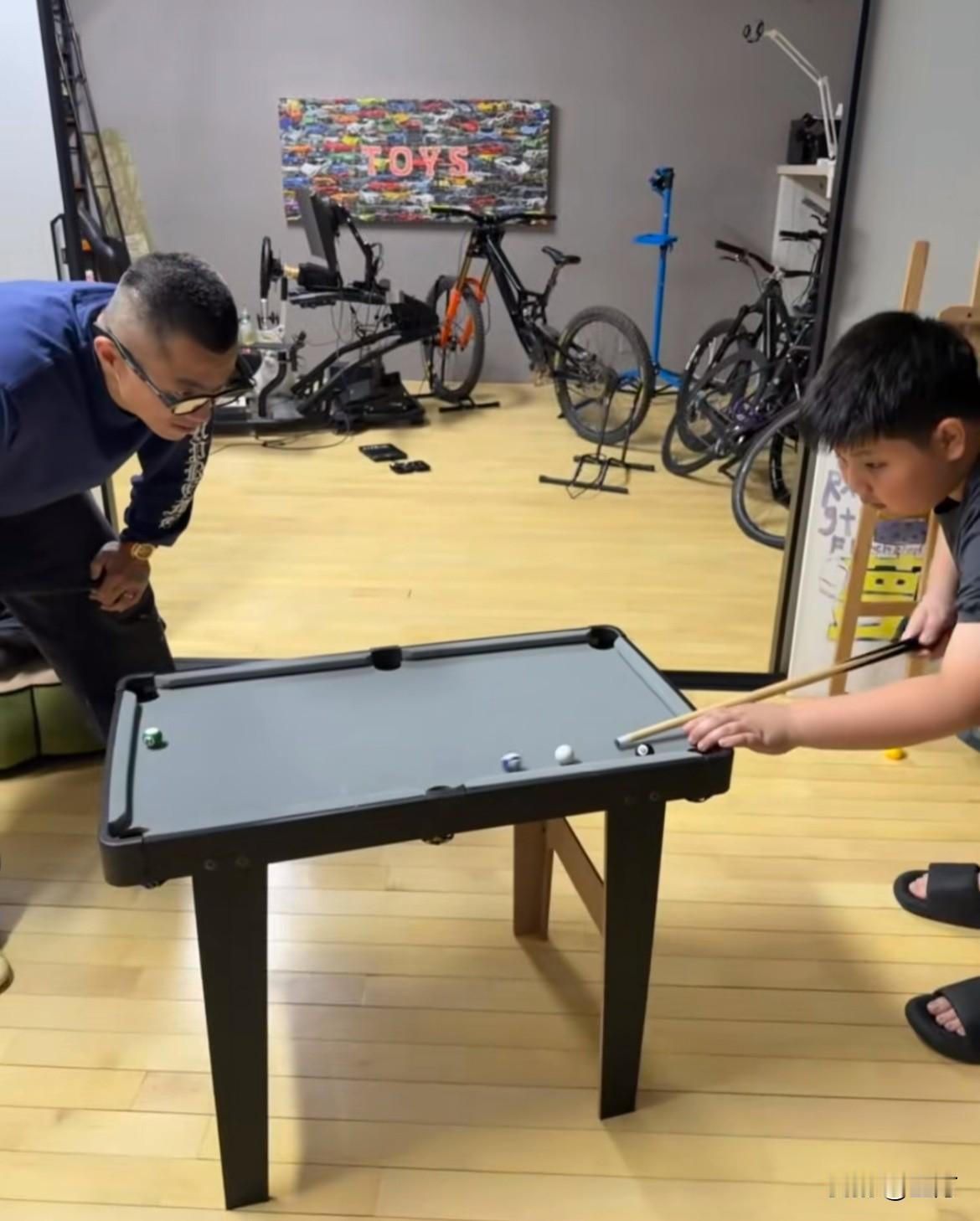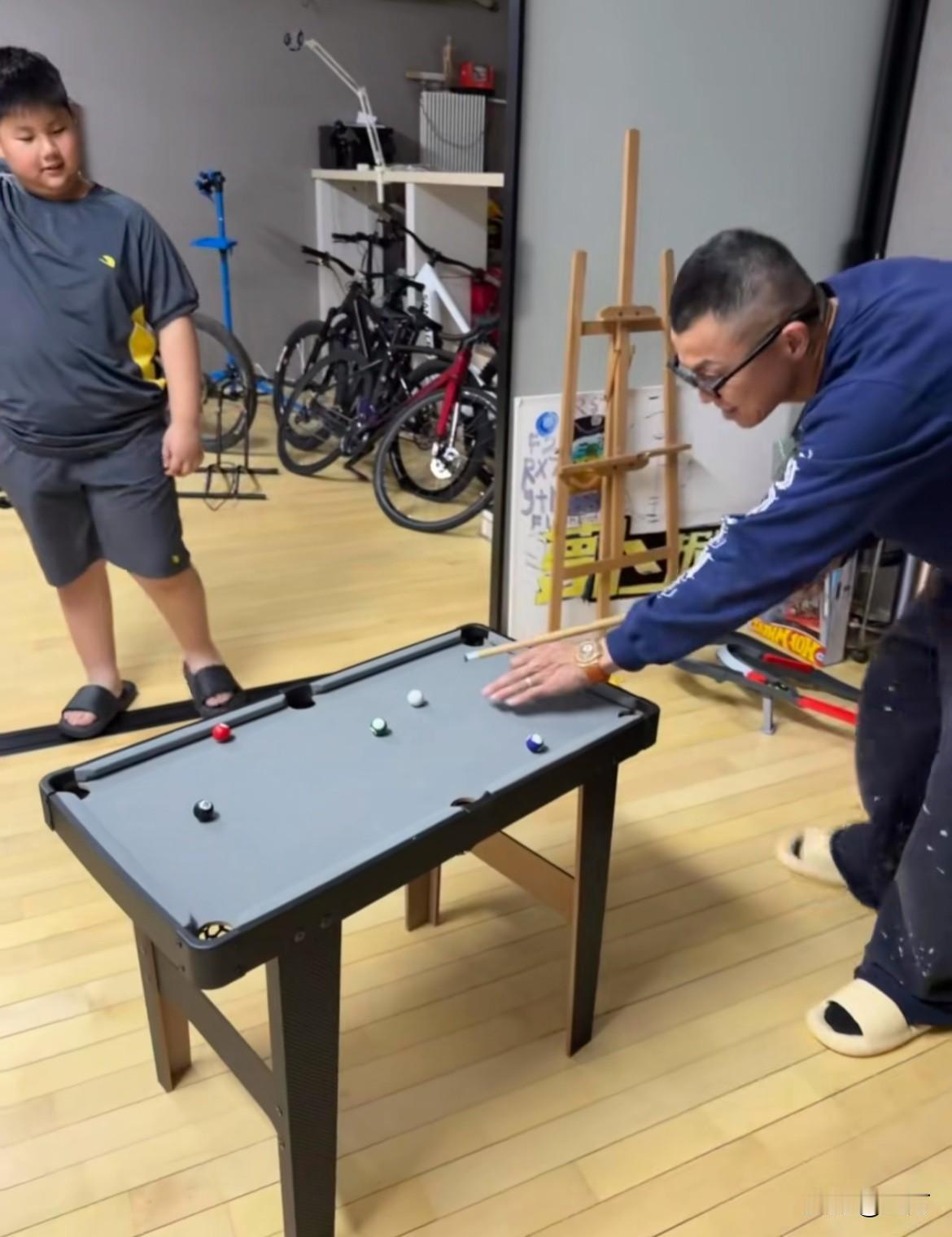 陈震穿着拖鞋和儿子玩台球! 在互联网上销声匿迹已经一个多月的陈震,新年的第五天,并没有像以前一样沉浸式的出差,而是呆在家里和儿子一起玩台球,这你受得了吗? 画面是陈震老婆拍摄的,他和他儿子两个人都撒着拖鞋,看起来一脸的轻松自在 ,陈震老婆配的文字是,陈震的水平就像孩子一样! 不过不管怎么样,他儿子最近是开心的,自己的这个老爸,陪他去澳门玩,陪他玩户外运动,陪他玩台球,这种体会是以前很少有的。 以前这个成绩是出差的陈震,现在变成了沉浸式的陪娃,只是不知道他天天呆在屋里面,时间久了会不会闷,但是他工作上的事情大量的减少,又没有其他事情做,确实有点两难的选择,这你受得了吗?