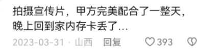 拍摄宣传片,甲方完美配合了一整天,晚上回到家内存卡丢了...