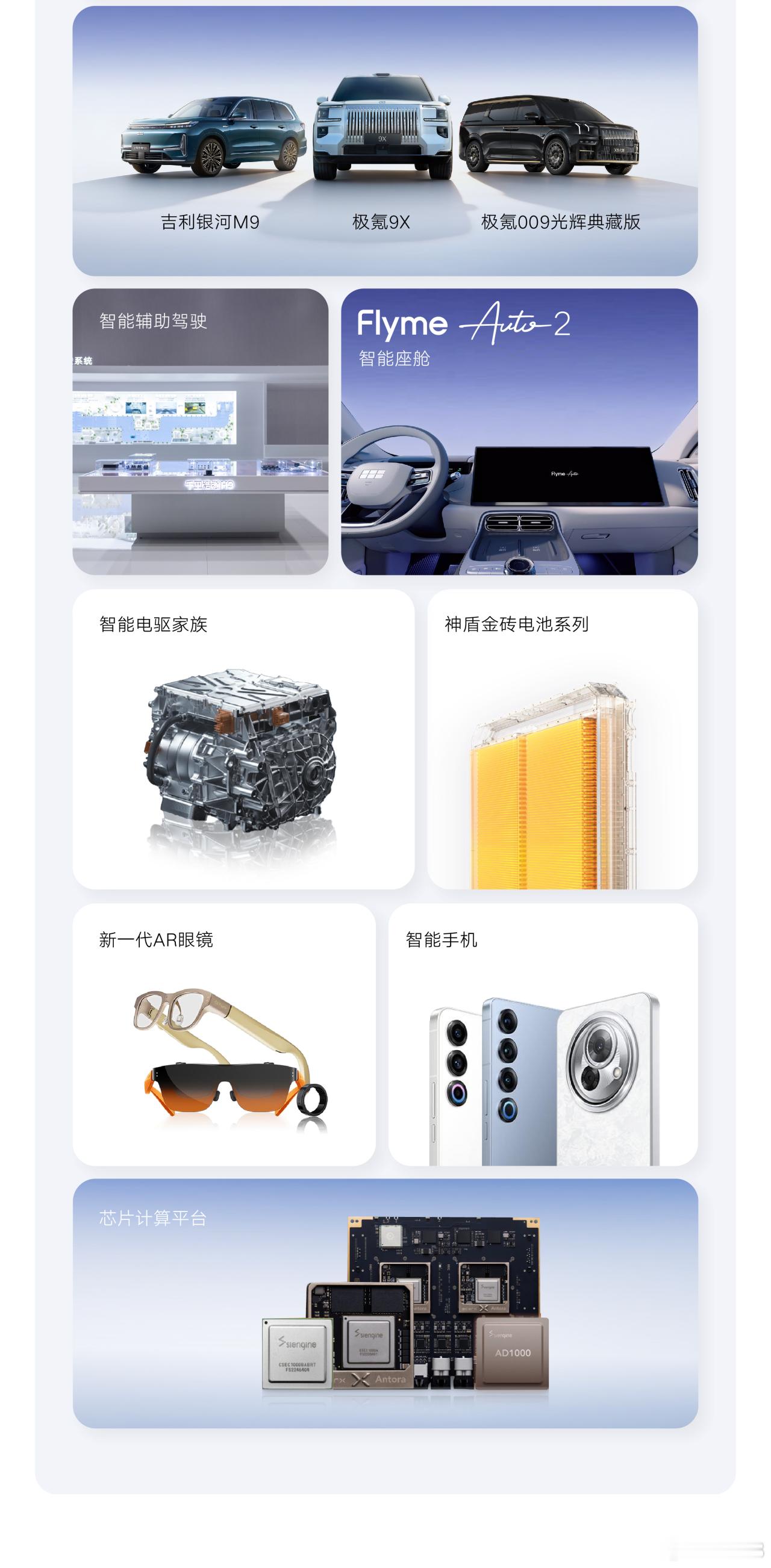 吉利预告了CES2026 上的参展内容:除了银河M9、极氪9X和极氪009光辉典藏版这三台车之外,他们在智能辅助驾驶功能、智能电驱、金砖电池、Flyme Auto 2智能座舱、芯片计算平台、AR眼镜和智能手机方向的成果也都会展出。在这届CES上,吉利还安排了两场直播:一场是北京时间7日的“划重点”,另一场则是北京时间9日的辅助驾驶系统一镜到底展示 新能源汽车汽车资讯