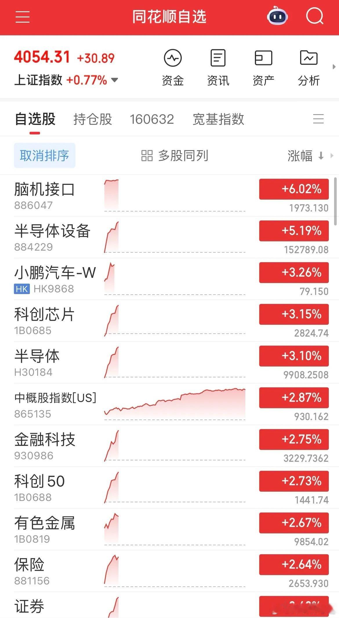 沪指十三连阳创十年新高,科技主线轮动领涨市场A股市场延续强势格局,沪指实现十三连阳,再创十年以来新高,做多氛围持续升温。板块呈现清晰轮动特征,科技相关赛道成为核心推力,赚钱效应显著。今日脑机接口板块继续狂飙,单日大涨近6%,延续近期强势表现;半导体设备板块直线拉升,涨幅近5%,印证此前存储芯片涨价利好上游设备材料的逻辑预判——设备龙头中科、北方大涨近5%,我们布局的信和嘉实半导体设备基金同步大涨近4%,实现“存储先行、设备接力”的轮动行情,完全符合预期。指数方面,科创50今日大涨超2%,表现优于创业板50;半导体板块走势强于CPO,与我们持续半年强调的“双创布局”思路高度契合,跟随节奏布局的投资者近半年收益丰厚。创业板探底回升,两市上午成交量与昨日基本持平,市场流动性保持稳健。港股同步发力,恒生科技指数大涨近2%,一举突破60日、120日均线,正式走出颓势,此前提示“预留港股仓位防踏空”的策略生效,后续可关注加仓机会。此外,有色板块大涨近3%,游戏板块连涨3天、涨幅超1%,多赛道多点开花;而机器人、商业航天冲高回落,反映板块轮动节奏较快。当前市场上升趋势明确,核心逻辑围绕科技主线与板块轮动展开。操作上建议“拿稳扶好”核心标的,避免频繁高抛低吸错失趋势性机会。后续若港股站稳均线,A股有望继续向上突破,可重点跟踪科技细分赛道与港股优质标的。