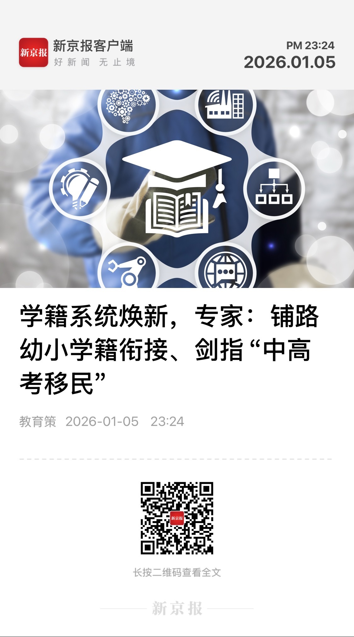 每日精选【学籍系统焕新,专家:铺路幼小学籍衔接、剑指“中高考移民”】 (新京报·教育策 2026-01-05 23:24 ) 『 新系统是否能够堵上学籍管理漏洞,打击“高考移民”“中考移民”现象? 』 “空挂学籍”“人籍分离”“虚假学籍”……学籍管理背后关联着诸多教育现实问题,也牵动着学生家长们的神经。1月5日,教育部宣布全国中小学生学籍信息管理系统完成更新,正式上线。据教育部介绍,新系统实现四方面升级,业务办理更便捷、学籍信息更精准、教育管理更科学、数据信息更安全。 此次系统升级与日前出台的学前儿童学籍管理政策是否存在关联?升级后的系统是否能够堵上学籍管理漏洞,打击“高考移民”“中考移民”现象?对于随迁子女教育,新系统能够满足哪些现实需求?……针对上述公众关心的问题,新京报记者采访了专家进行解读。 ▪️ 系统升级与学前儿童学籍管理深度关联 日前,“建立学前儿童学籍管理制度”的消息引发公众关注。教育部印发《全国学前儿童学籍管理办法(试行)》,强调凡在依法举办的幼儿园就读的学前儿童均须建立学籍,一人一号,小学学段接续使用,终身不变,学籍变动管理实行“一人一籍、籍随人走”制度。 城华教育智库理事长马学雷指出,该政策将为规范幼儿园办园行为提供支持,也将为普惠补贴和免费补贴等支持发展措施提供管理数据。 “构建全国统一学籍体系需要系统规划。”对于此次中小学生学籍信息管理系统升级,马学雷认为,预计将与学前儿童学籍深度关联,达到幼升小学籍无缝衔接与数据互通共享的目的。“这也是教育管理数字化的必然趋势。” 中国教育科学研究院研究员储朝晖指出,此次系统升级在网络信息技术上进行提升,能够为未来学前儿童与小学阶段的学籍衔接提供更多便利。 记者注意到,教育部基础教育司负责人此前曾在答记者问时指出,当前,各地对学前儿童在园信息的采集、管理等存在不规范问题。马学雷认为,接下来的重点是学前儿童的学籍系统建立和数据录入,包括民办园在内,要尽快将数据进行汇总。 ▪️ 解决学籍空挂等问题,防范“中高考移民” 此次系统升级亮点之一是从源头解决重复学籍、空挂学籍等问题,严格防范“人籍分离”“虚假学籍”等违规行为。 长期以来,“中高考移民”行为屡禁不止,中小学生“人籍分离”“空挂学籍”现象也是长期存在的管理难题。而这不只是一个技术问题,背后有深层次原因。 马学雷指出,该现象背后的社会原因之一是义务教育发展的不均衡。这种不均衡导致人们都渴望将孩子送入所谓的“好学校”,于是催生了“人籍分离”“空挂学籍”等违规行为。 他举例称,例如,有的学生为提高高考竞争力,到其他省份学校借读,但保留户籍省份学籍,高考才回原省份考试,这种“人籍分离”现象严重损害了教育公平、影响了学生健康发展。 储朝晖提到,高中阶段的一个突出现象是,一些学生到普通高中去上课,但是学籍却挂在职业学校;初中小学阶段,有学生到城里上学,但学籍却挂在乡村学校。 2025年2月印发的修订版《中小学生学籍管理办法》对该问题“亮剑”,明确将严肃、及时处理检查中发现的人籍分离、空挂学籍等问题,强调中小学生学籍管理“一人一籍、籍随人走”,要求“学校应当至少每学期核准一次学生学籍,确保人籍一致、学籍变动手续完备、学生基础学籍信息和学籍变动信息准确。” 1月5日,据教育部介绍,全国中小学生学籍管理系统升级后,优化身份信息查重,完善与国家人口基础信息库实时比对机制,自动生成并分配“一人一号、终身不变”的学籍号,从源头解决重复学籍、空挂学籍等问题,严格防范“人籍分离”等违规行为。 在马学雷看来,此次学籍管理系统的升级则是对上述政策在信息化和配套服务方面的完善。“系统升级后,信息管理无死角、可追溯,对于‘中高考移民’的违规操作会起到很好的技术性防范作用。” 储朝晖认为,从技术角度来解决“学籍空挂”“人籍分离”问题是可行路径之一,能够发挥一定作用。同时他也提到,根本上还需要推动教育资源均衡。 ▪️ 流动人口子女学籍办理将更加便捷 实际上,“人籍分离”还存在另外一种情形,即人口流动带来的随迁子女教育问题。“因为人口流动,这部分孩子无法在学籍所在地上学,他们需要解决在流入地区‘有学上’的现实困难,但由于种种限制,造成学籍空挂。”马学雷指出。 实际上,新修订的《中小学生学籍管理办法》对跨省转学、省内转学等学籍变动条件做了细化,明确进一步简化跨省转学材料,实现跨省转学“一网通办”,以及“转入学校应通过国家学籍系统启动学籍转接手续,转出学校及双方学校上级学籍管理部门予以核办”。 新升级的学籍管理系统更是优化了学籍注册、跨省转学等高频业务流程,减少数据交换中间环节,跨省转学办理效率较系统升级前大幅提升,为群众服务提速。 储朝晖表示,系统升级后,对于随迁子女的学籍办理从技术操作层面将更加便捷,正常的学籍流动将更为高效。 此外,记者注意到,学籍系统升级后,海量鲜活的学籍数据还能够在许多跨行业应用中提供支撑,例如公安部“团圆行动”高效打拐等。马学雷解释称,学籍管理系统能够对打拐工作提供数据上的精准支持,对“虚报”“冒用”等行为进行精准辨别、尽早预警、及时干