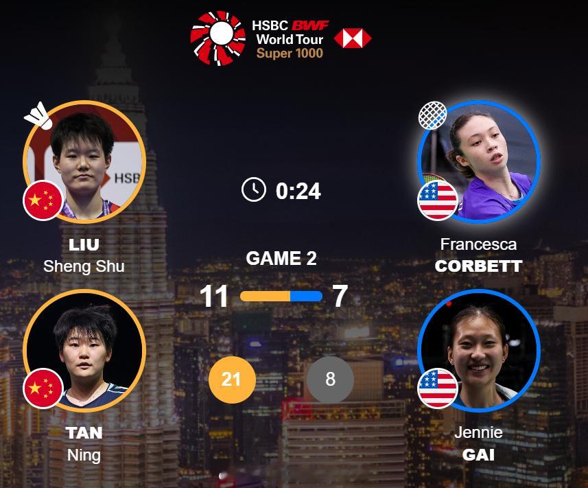 2026年马来西亚羽毛球公开赛 女双 1/16赛 刘圣书(1) / 谭宁 21-8 11-7 王曦曦 / 盖骆热点现场
