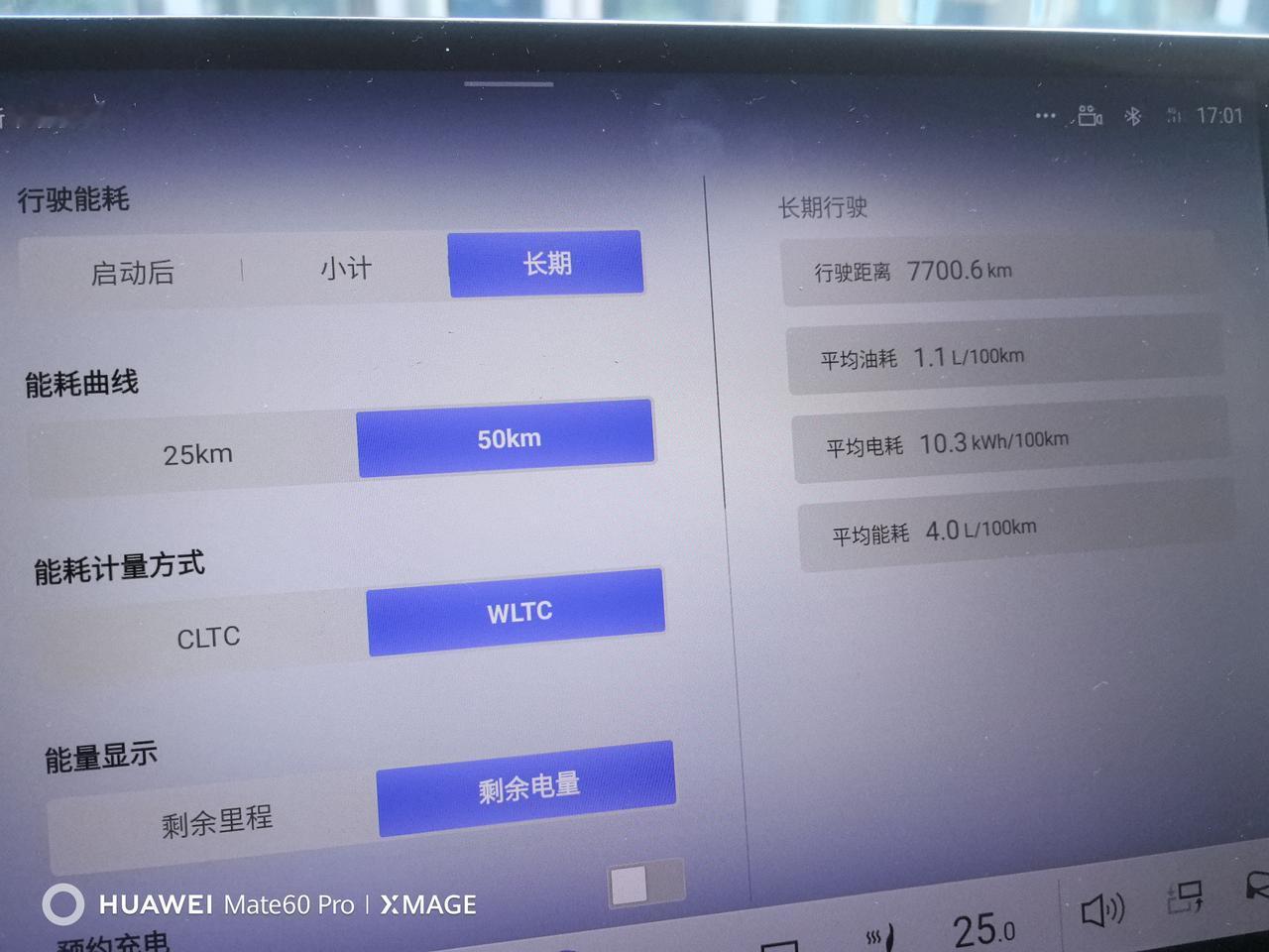 我的车型是马自达EZ-6增程200至尊版,目前已经行驶了7700公里,本月百公里电耗10.3度电,百公里油耗1.1升,略低于上月,对此综合能耗还是比较满意的【来自懂车帝车友圈】