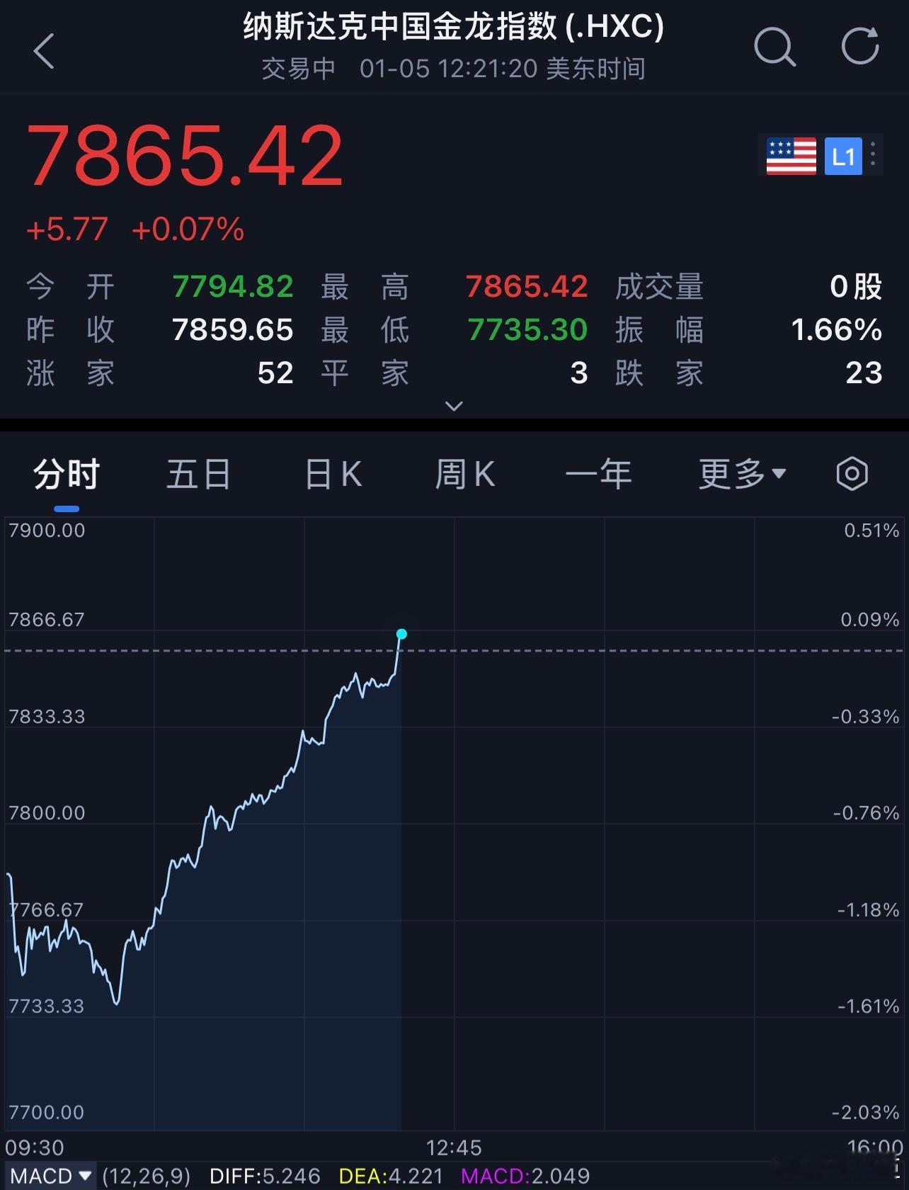 纳斯达克中国金龙指数库库拉升。。。怎么感觉a股13连阳好像也没那么难呢