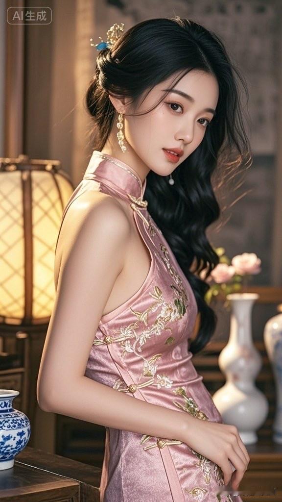 穿旗袍的少女,优雅坐卧,古风韵味十足。