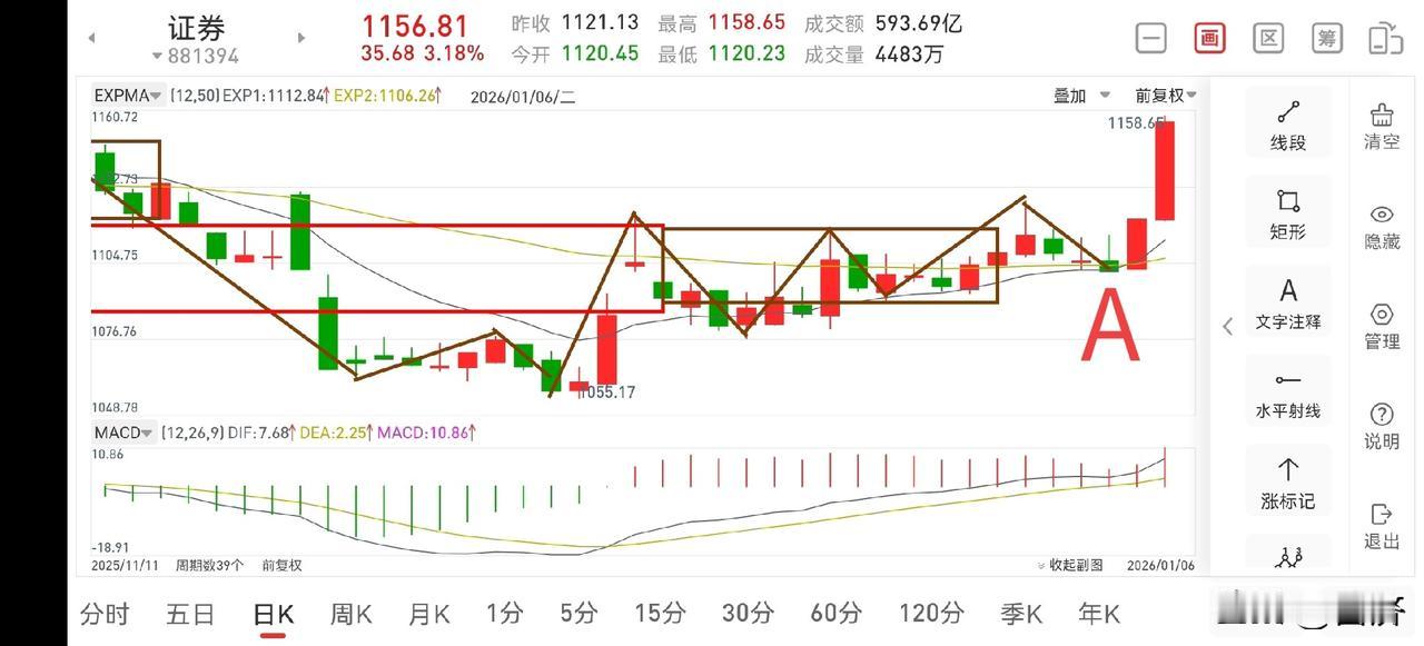 聊聊证券板块(2026.1.6) 证券板块在经过前期的震荡整理后,昨天的强势上涨