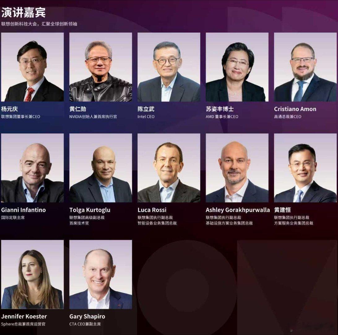 联想排面了!英伟达CEO黄仁勋,英特尔CEO陈立武,高通CEO克里斯蒂亚诺・安蒙