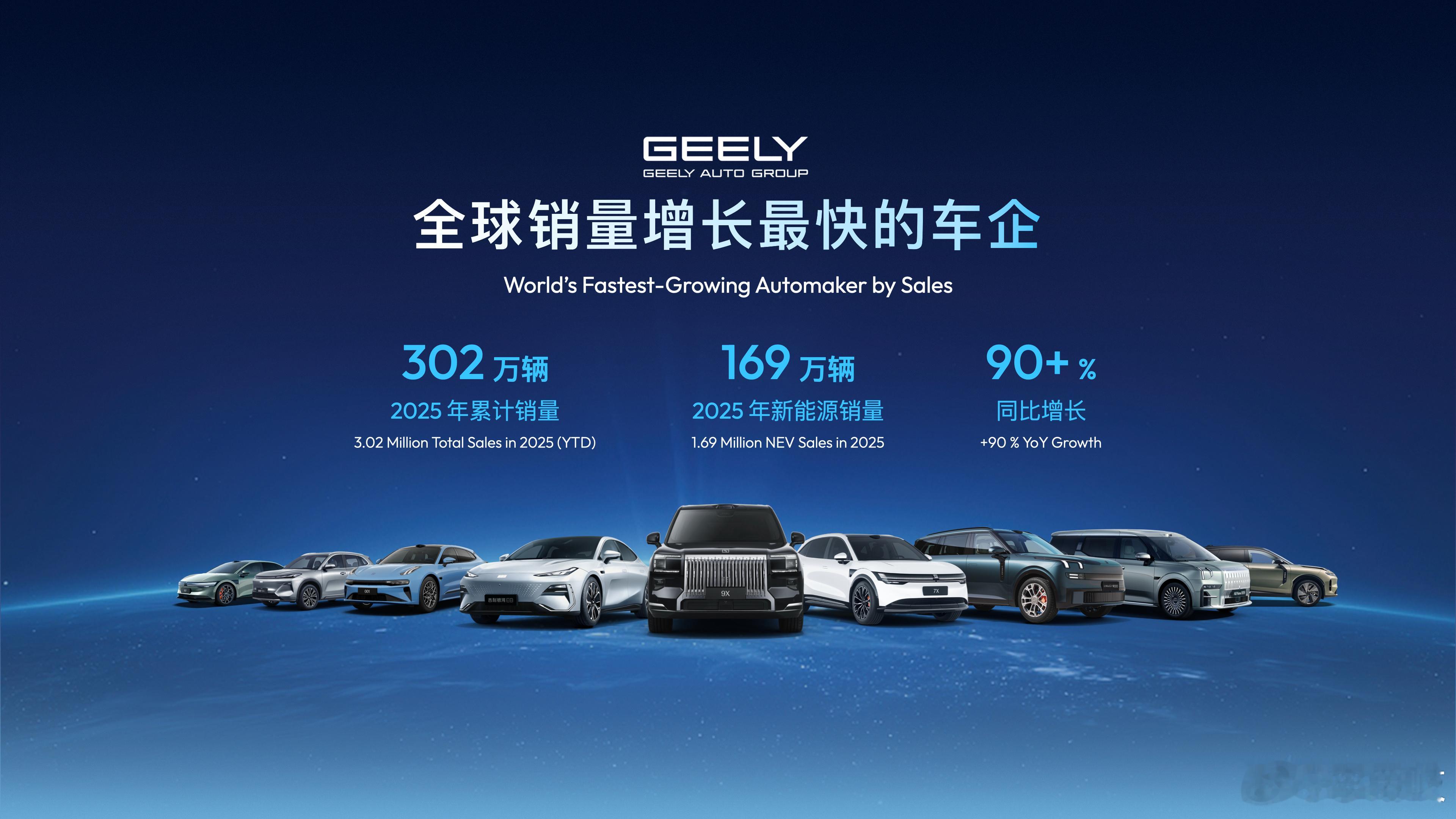 2026 CES成吉利主场!一口气带来WAM模型、全域AI 2.0、千里浩瀚G-ASD等技术,助力吉利冲刺345万辆年销目标全域AI能给汽车带来什么拉斯维加斯当地时间1月5日,吉利汽车集团宣布基于其首发的WAM世界行为模型,吉利全域AI技术体系顺利进化到了2.0时代,实现了AI技术在整车各域的跨域融合,让汽车智能首次拥有了持续进化的“世界观”和“判断力”。在全域AI 2.0加持下,吉利推出的Eva超拟人情感智能体,正快速进化为超拟人、超智能、超好用的整车智能中枢。同时,吉利还发布了千里浩瀚辅助驾驶系统的英文品牌及软件版本名称——千里浩瀚G-ASD,代表着吉利与千里智驾联合研发的高含模量智能辅助驾驶解决方案,旨在为吉利体系下的用户提供同等级下最优质的体验。此外,吉利还携极氪9X、极氪009光辉(典藏版)、吉利银河M9等最新电动汽车,以及神盾金砖电池、Flyme Auto智能座舱系统等吉利“全域AI”技术体系成果,亮相2026国际消费电子展(2026 CES),全面展现中国汽车领军品牌的科技魅力。基于WAM模型强大的内核,吉利全域AI技术体系顺利进阶到了2.0时代。相较于全域AI 1.0,全域AI 2.0实现“智能体化”和“引擎化”两个根本性的突破。在“智能体化”突破上,吉利首次设计并实现的“1+2+N”全域多智能体协同框架,使不同域的智能体能够进行对话、协商和协作,用户一个简单的自然语言指令,即可触发多个智能体间一系列复杂的任务分解、资源调度和协同执行。“引擎化”则意味着全域AI 2.0将感知、认知、记忆、决策等最基础的AI能力,从各个域中提炼出来,打磨成一系列如“全域感知引擎”、“全域记忆引擎”高效、稳定、可被全域任意智能体随时调用的“公共技术引擎”。在全域AI 1.0技术体系赋能下,吉利汽车集团2025年销量突破302万辆,其中新能源销量近169万辆,同比增长90%,均创历史新高。2026年,在全域AI 2.0的全面助推下,吉利推出约10款全新车型,冲刺345万辆的全年销量目标,并将中国车企智能电动化的创新成果与全球产业链深度融合,持续为全球用户创造超越期待的出行体验,加速向“全球智能汽车引领者”的目标阔步迈进。