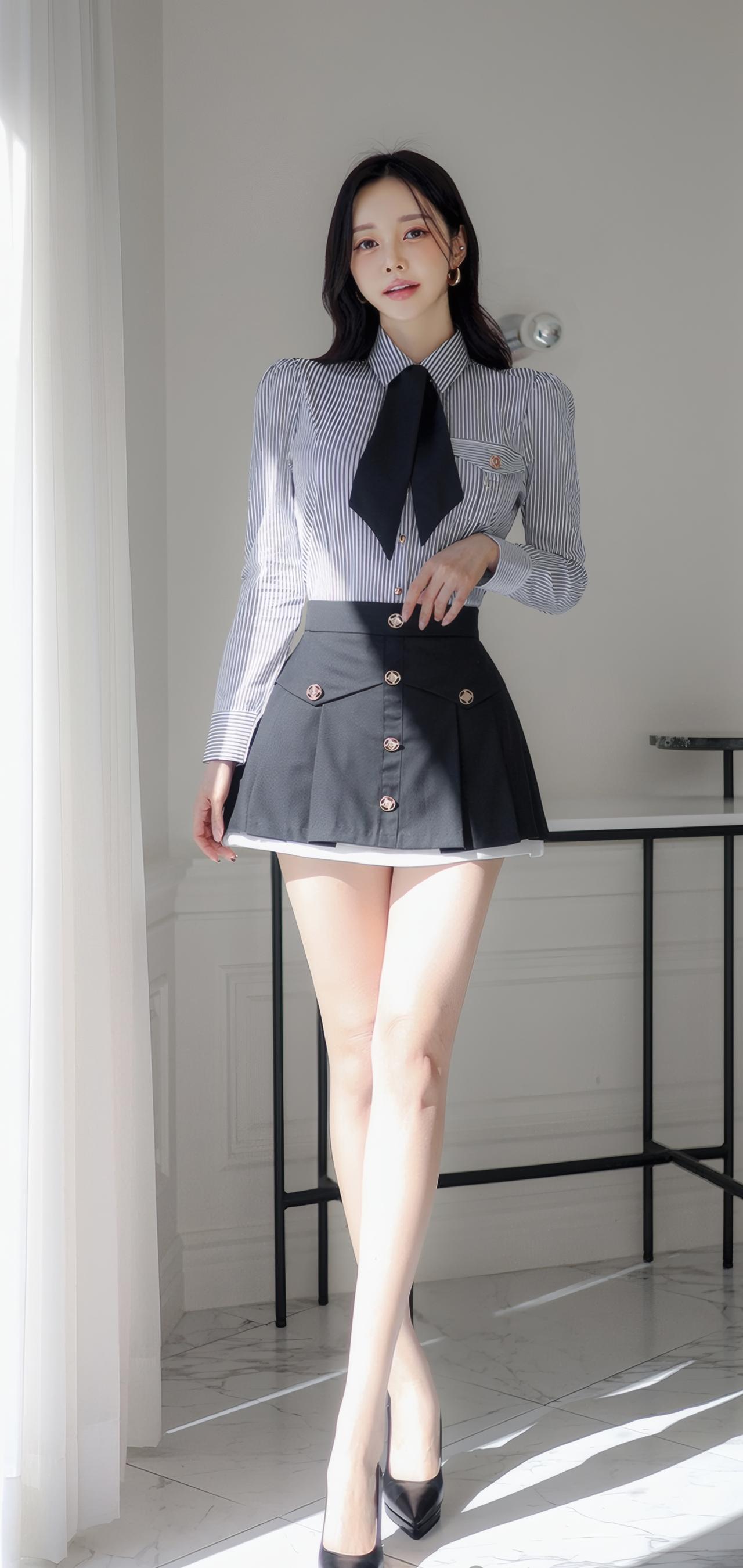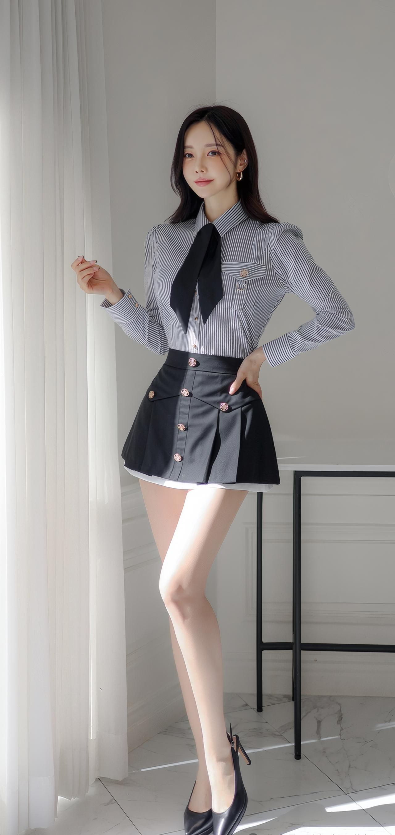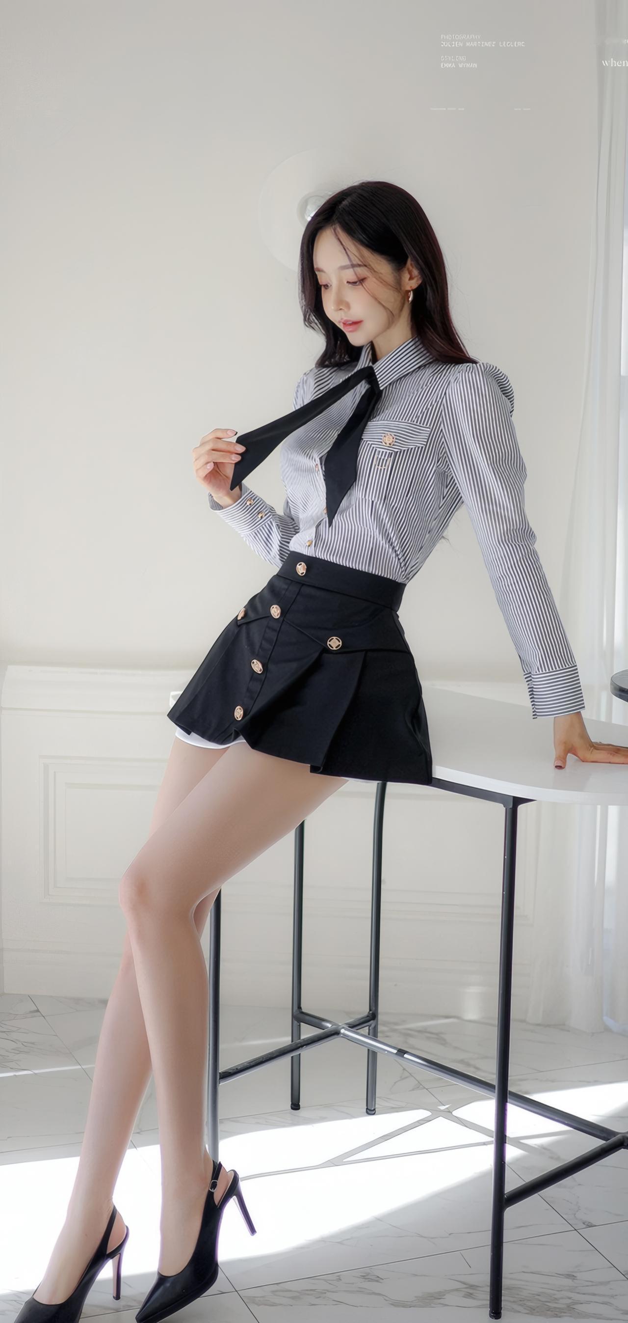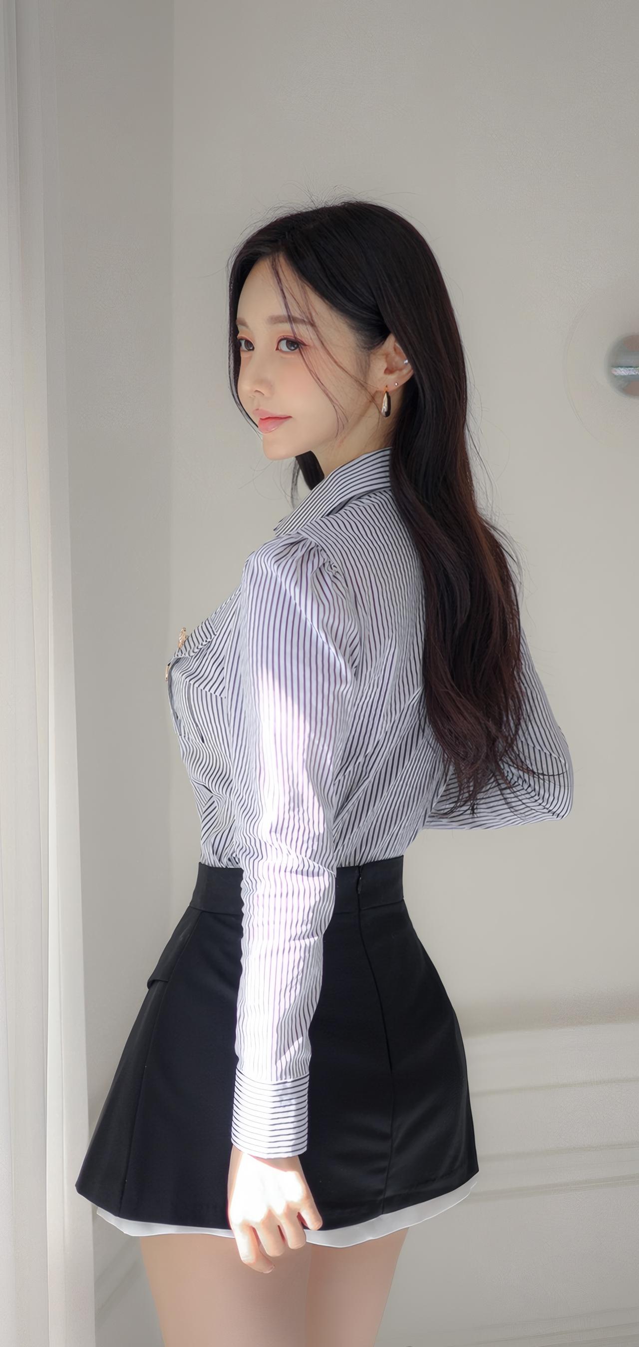 优雅气质穿搭,米色上衣搭配黑色短裙,简约时尚!
