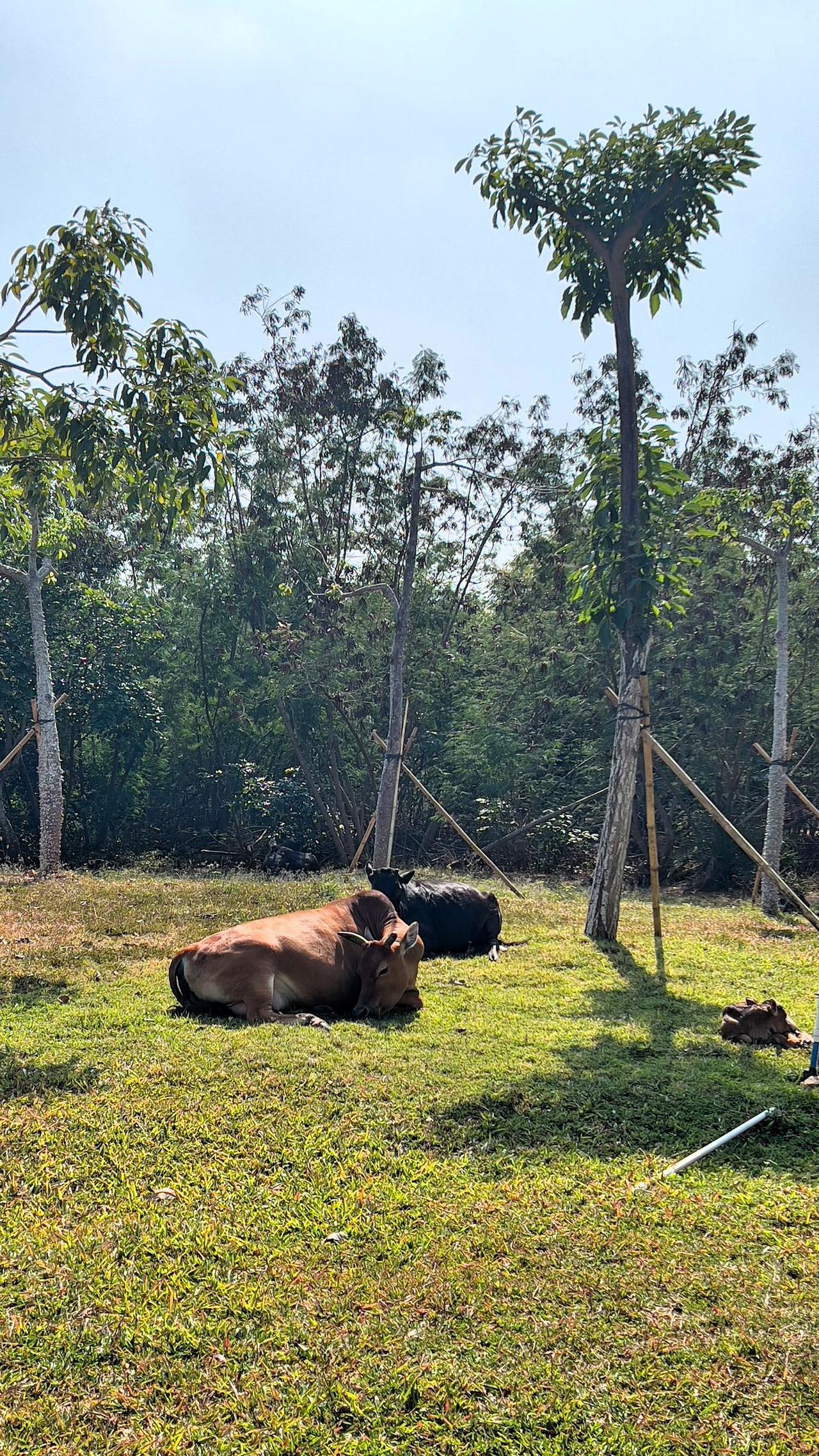 【原创】三亚遇见:炙热的中午,牛儿也懂得休息,两头牛在草地上享受宁静时光。🌿🐄