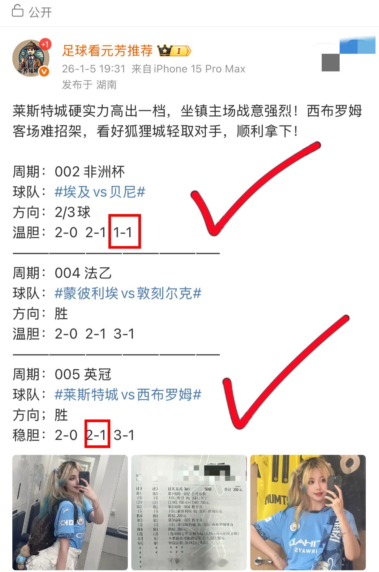 牛逼!牛逼!牛逼!兄弟们,这波必须给元芳把排面打在公屏上!👊👊👊两个精准笔分直接拿捏!重心场次更是直接大满贯拿下!这波肉吃得简直满嘴流油!🍖首先看非洲杯,埃及这场1-1的比分就像是元芳写的剧本,分毫不差,连带2/3球的方向也是稳稳收下!紧接着咱们的今日重心——莱斯特城!主场2-1有惊无险拿下西布罗姆,方向+笔分双双命中!这才是实力的体现,跟着元芳的重心走,那就是通往收🌾的康庄大道!💰🔥唯独可惜的是法乙的蒙彼利埃!主场作战竟然被敦刻尔克1-3反向打爆,这帮出生是在梦游吗?硬生生坏了咱们的全胜金身,真的是有点恶心人!🤬不过瑕不掩瑜,重心大满贯加上两个笔分稳胆,这收益已经相当炸裂!今晚的比赛元芳已经准备好了更稳的复仇组合,势必要带兄弟们继续连胜!不想错过的,赶紧置顶老地方集合,车门即将焊死,速来!