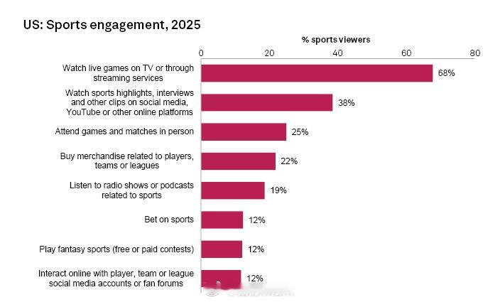 美国是国际足球第一大市场,这两年足球是美国四大联盟之外最受欢迎的体育项目,甚至已经可以和棒球粉丝打嘴仗了……现在下超越棒球的结论还有点早,但未来足球真的有戏。12%的美国观众会参与菠菜、付费/免费范特西玩法,这个市场可不小了。