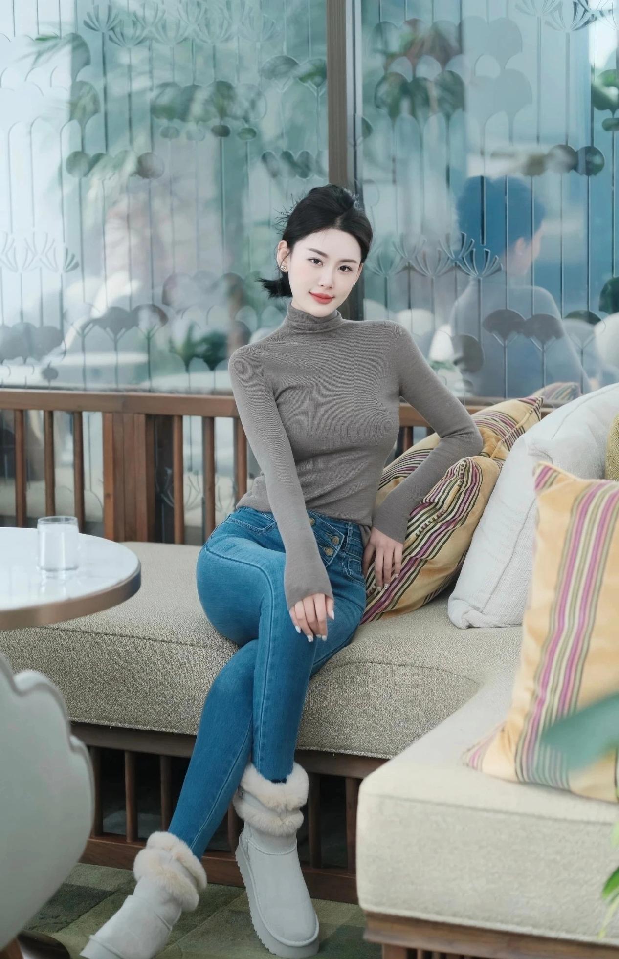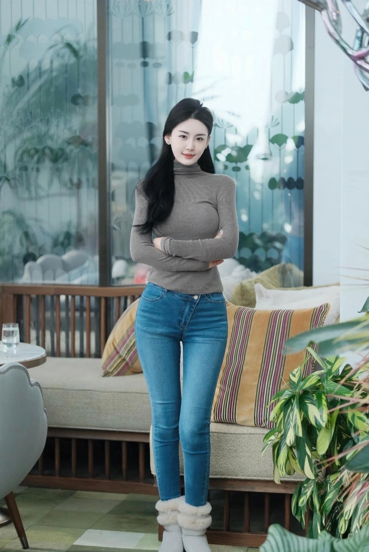 牛仔裤穿搭,灰色高领衫配牛仔裤,秋冬气质天花板灰色针织穿搭 灰色高领毛衣女 灰色T恤牛仔裤 灰色上衣穿搭 灰色针织上衣 灰色高领针织衫 高领灰色毛衣