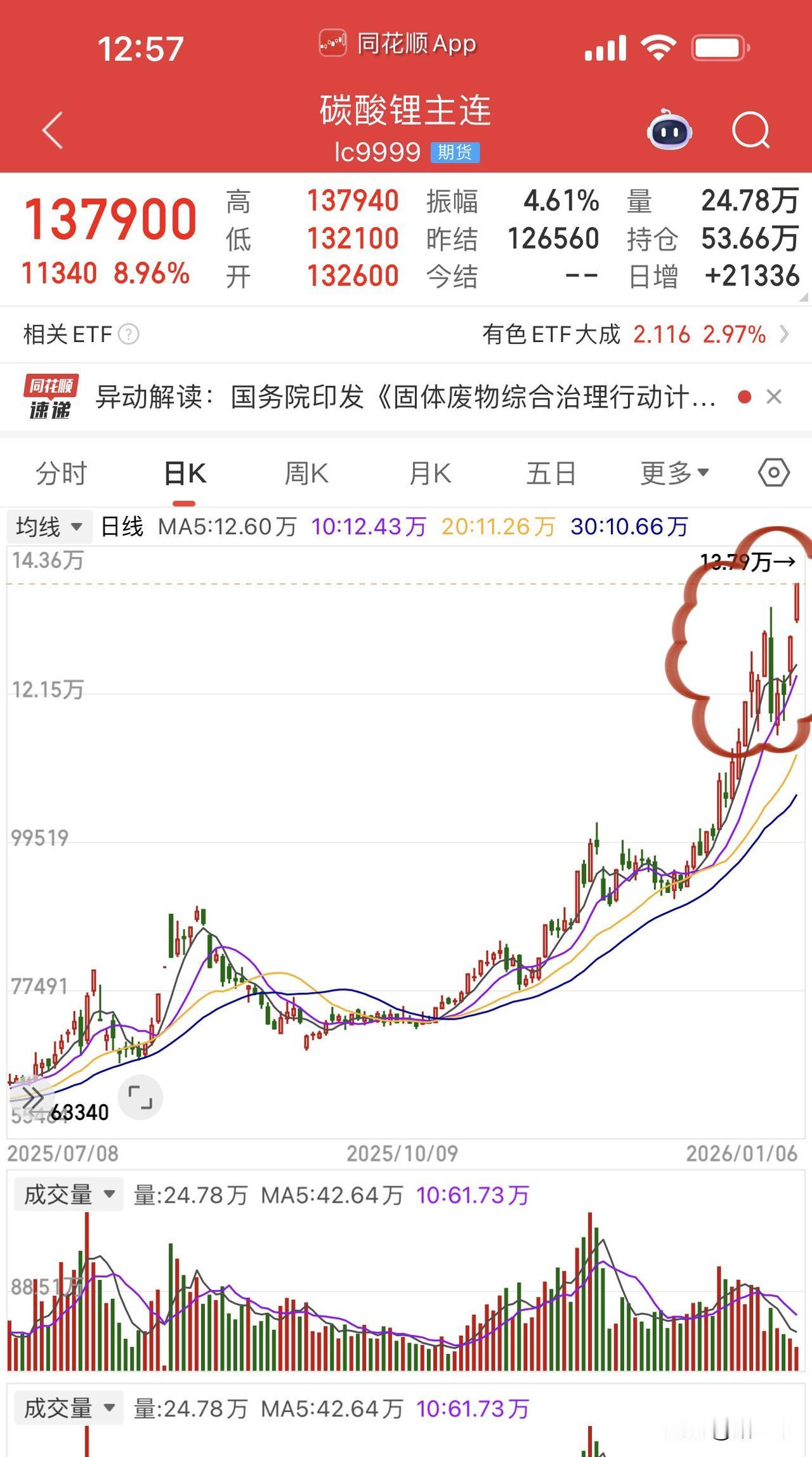 碳酸锂期货主连又一次登上王者宝座! 赣锋锂业、天齐锂业演绎稳稳的幸福, 赣锋锂业近期小利空, 不知天齐锂业能否借机迎头赶上。 午间行业再次释放涨价消息, 上下游博弈快要出成果了, 动力电池和储能二者只要有一个高增长, 那么供应就偏紧, 下游就有涨价动能! 确定大订单且调整到位的, 龙蟠科技、容百科技、湖南裕能等可以去抓机会,电池这条主线不要做丢! …