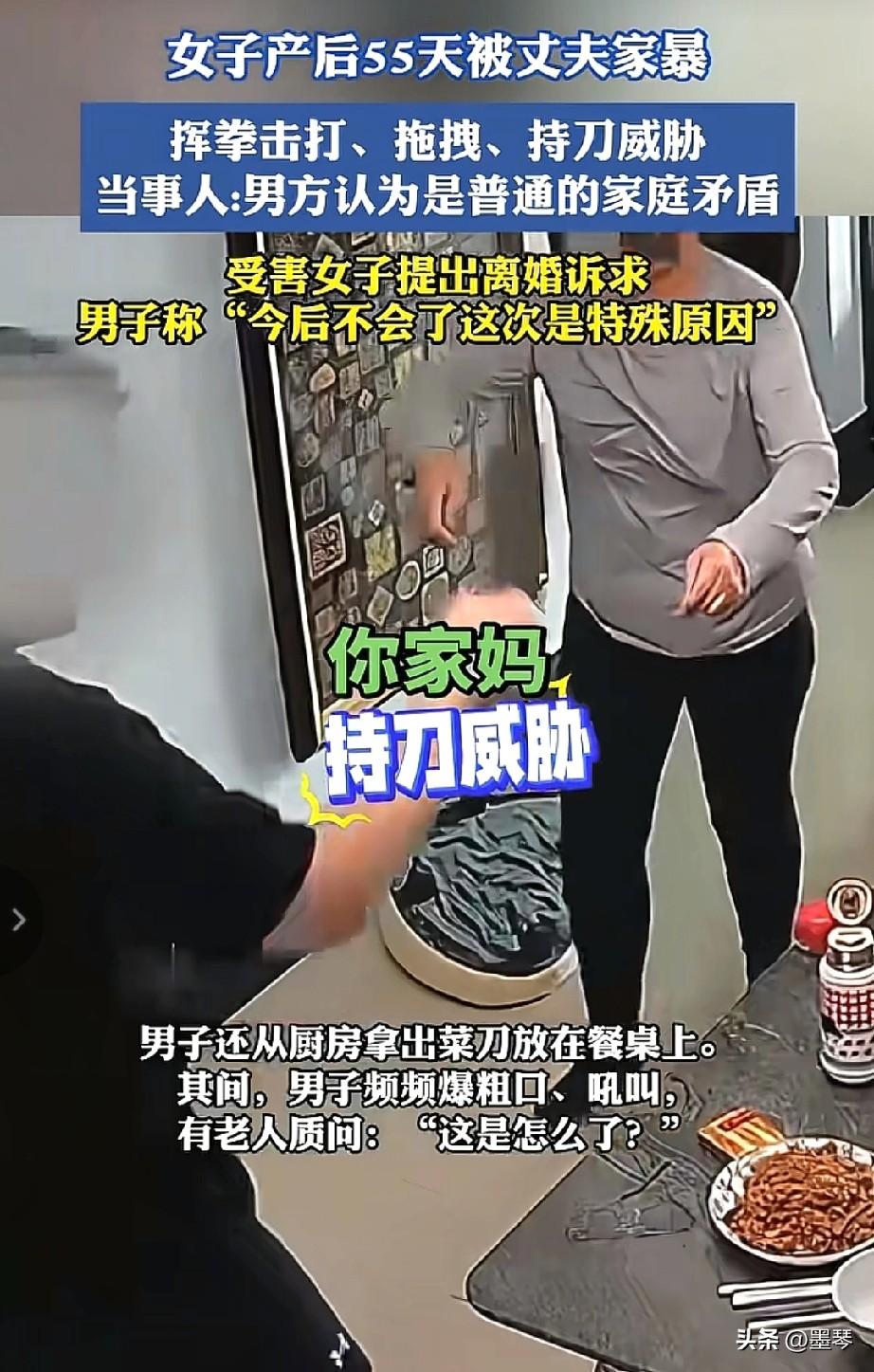 产后55天遭家暴,持刀威胁还被认为是家庭矛盾?年轻人的婚姻到底怎么了。 近日,一则“女子产后55天被丈夫家暴”的新闻让人触目惊心。95后王女士与丈夫经人介绍相识,2024年相恋结婚,2025年10月刚生下孩子,仅55天就遭遇丈夫挥拳击打、拖拽,甚至被对方拿出菜刀威胁。 更让人寒心的是,男方竟觉得这只是“普通的家庭矛盾”,还以“特殊原因”为由轻描淡写,而王女士只能无奈提出离婚诉求。 这起事件并非个例,如今越来越多年轻人的婚姻中,家暴、矛盾激化等问题频频暴露,不禁让人发问:年轻人的婚姻到底怎么了? 其实,这类悲剧的发生,从来都不是单一原因造成的。就像这起案例中的夫妻,经人介绍后仓促结合,缺乏足够的情感磨合,婚姻的根基本就薄弱。 当产后育儿的分歧、婆媳相处的摩擦、角色转变的压力一同涌来,本就脆弱的感情便不堪一击。 更值得反思的是,部分年轻人面对婚姻矛盾时,既没有成熟的情绪管理能力,也缺乏有效的沟通方式。遇到问题不是坐下来协商,而是用拳头、刀具等极端手段宣泄情绪,甚至将家暴视作“家务事”,完全无视法律的边界。 而受害者往往因产后身体虚弱、顾虑孩子、经济依赖等原因,陷入隐忍的困境,进一步纵容了施暴者的行为。 婚姻从来不是一场仓促的“任务”,而是需要两个人用心经营的修行。从相识相恋到步入婚姻,足够的了解、磨合是基础;面对婚后的压力与矛盾,理性沟通、互相包容是关键。 更重要的是,我们必须明确:家暴不是家庭矛盾,而是赤裸裸的违法行为。无论是施暴者还是受害者,都应摒弃“家丑不可外扬”的错误观念,受害者要勇敢拿起法律武器保护自己,社会也应给予更多支持与帮助。 愿每一段婚姻都能被温柔以待,愿每一个身处婚姻中的人,都能远离暴力,守住彼此的底线与尊严。