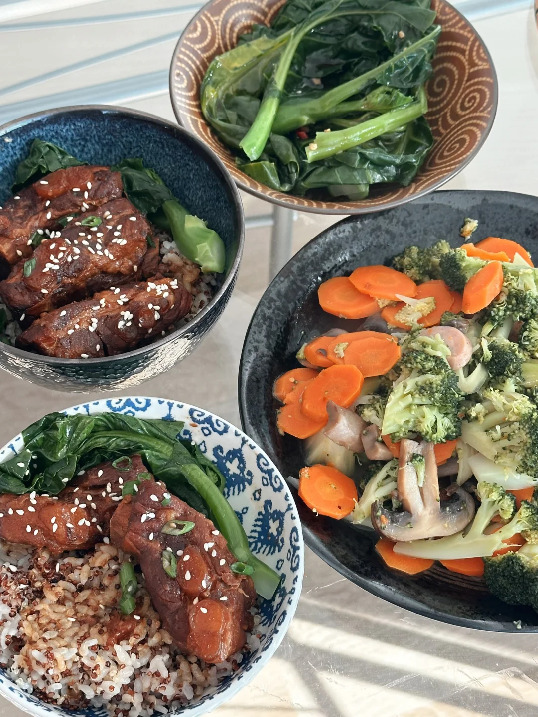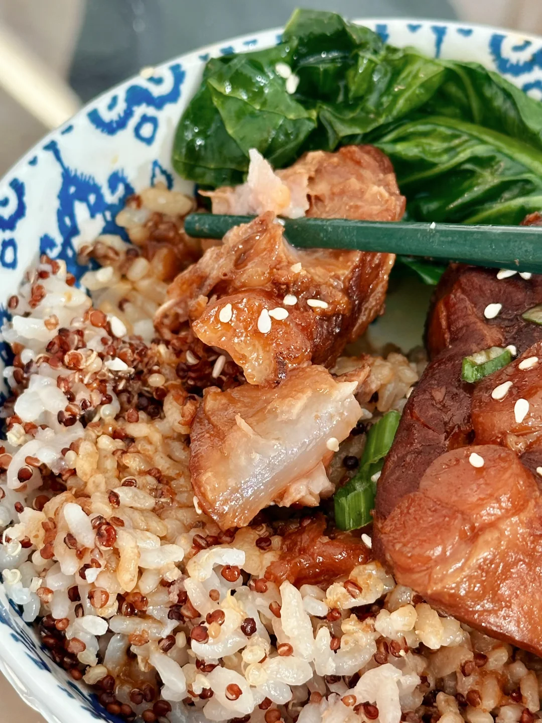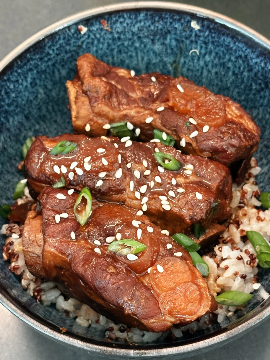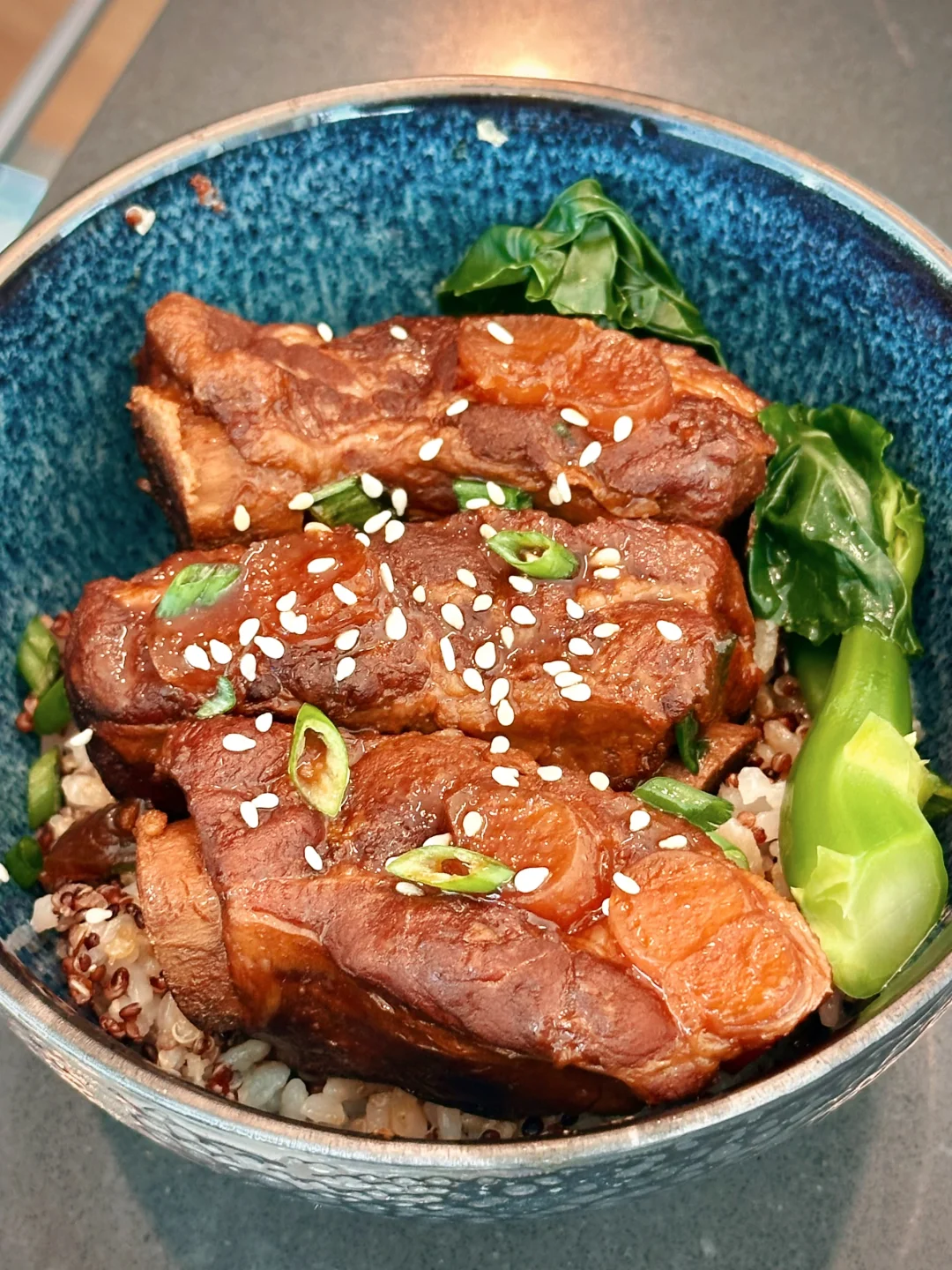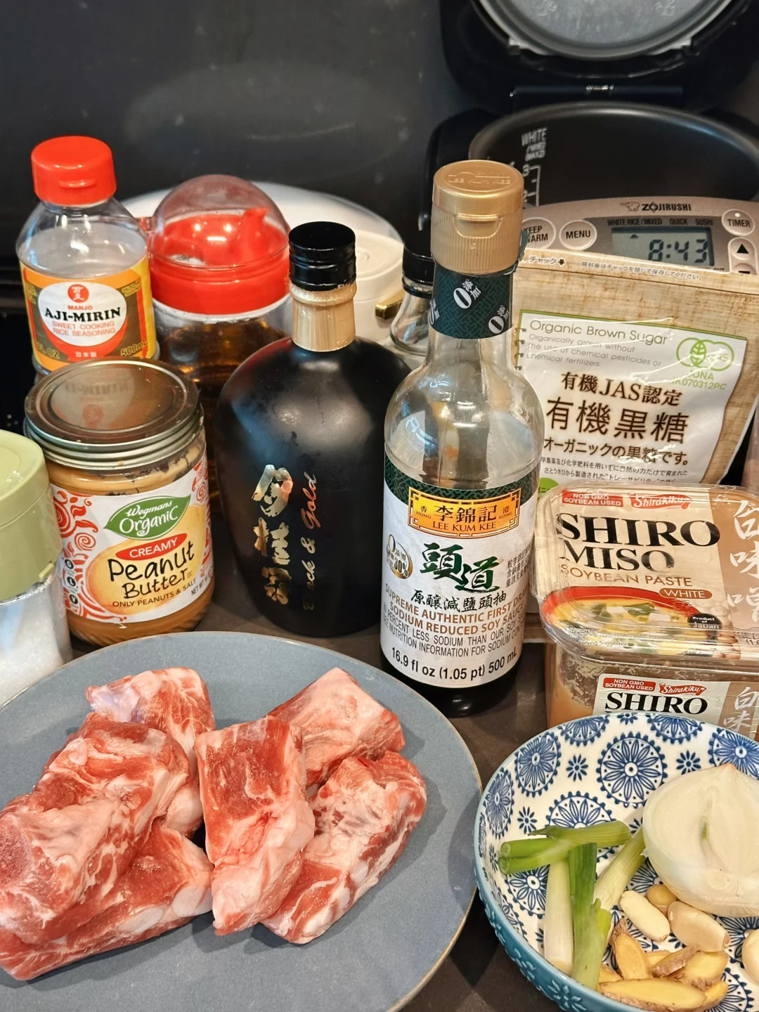 参考了的日式酱料配方,味噌和花生酱的加入让酱汁比一般的红烧更浓郁鲜甜。酱汁淋在米饭上,一口肉肉一口饭,实在有一种“把自己养得很好”的感觉。