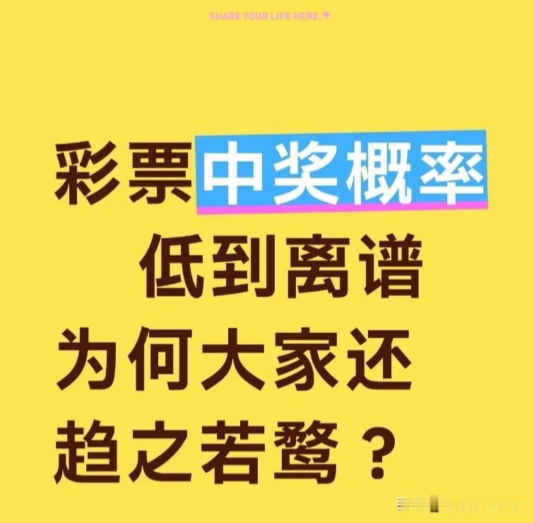 极低的中奖概率, 双色球:一等奖中奖概率约为1/1772万,相当于一生被雷击一次的概率。大乐透:一等奖中奖概率约为1/2142万,比双色球更低。假设每天买一张双色球,连续买10年(3650张),中一等奖的概率仅为0.0206%(约1/4850)。即使连续买30年,中一等奖的概率也仅约0.0618%,几乎可以忽略不计。 为什么这多人一直坚持购买彩票,它会触发人体多巴胺分泌增多,带来激动、快乐、兴奋等愉悦感受,用2元购买彩票获得的期待感和惊喜感,其情绪价值不亚于一杯咖啡或奶茶, 认知偏差与心理陷阱,人们倾向于高估小概率事件的积极结果,认为自己比他人更幸运。 过度投入,有人每月花费200元购买彩票,30年总投入可达7.2万元,而中奖概率几乎为零,案例显示,有人因沉迷彩票花费数十万元,最终负债累累。 心理与家庭风险,长期未中奖可能导致焦虑和压力,影响心理健康,因购买彩票导致家庭矛盾,影响家庭关系,甚至导致子女教育受影响。 赌徒心理,少数购彩者执迷于彩票开奖号码的规律,产生非理性投注,有些购彩者把购彩当职业,想靠中奖挣钱过日子,但好运不可能总是光顾同一个人 控制投入,量力而行,将购彩支出控制在可支配收入的1%以内,建议每月不超过10-20元,每次不超过2注,避免沉迷,将购彩视为娱乐而非投资。 享受过程而非结果,将彩票视为一种娱乐方式,而不是改变命运的唯一途径。所有声称能提高中奖率的方法均不科学,包括算法、模型。 与其把希望押注在万分之一的小概率事件上,不如把精力放在可以掌控的人生道路上,通过脚踏实地的努力和智慧创造真正的幸福与成功。