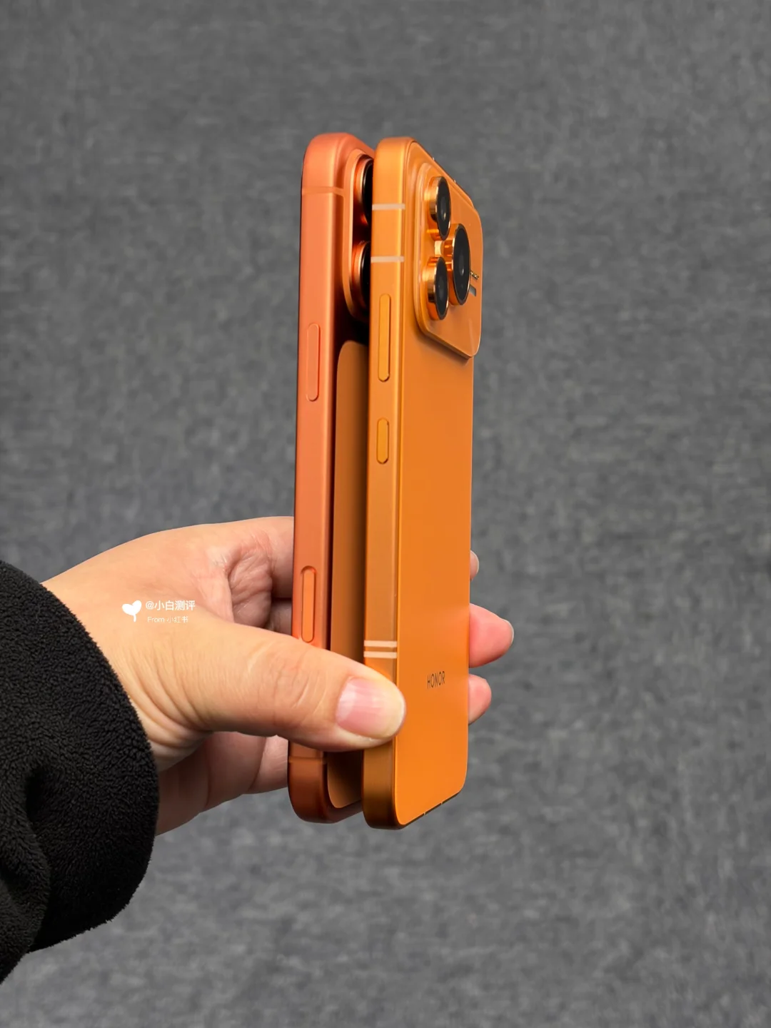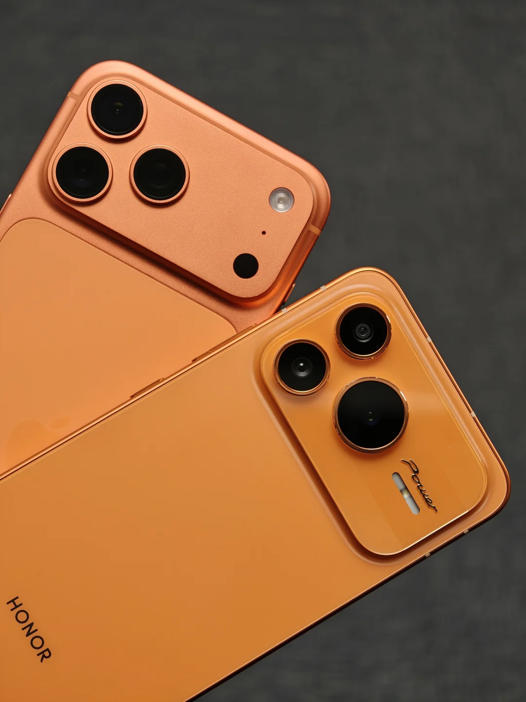 橙色横向大矩阵荣耀Power2对比iPhone17PM