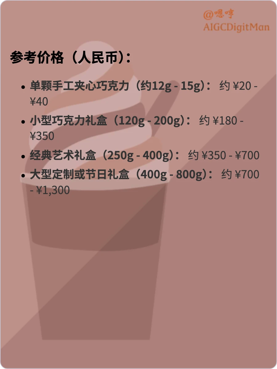 单颗手工夹心巧克力(约12g - 15g): 约 ¥20 - ¥40