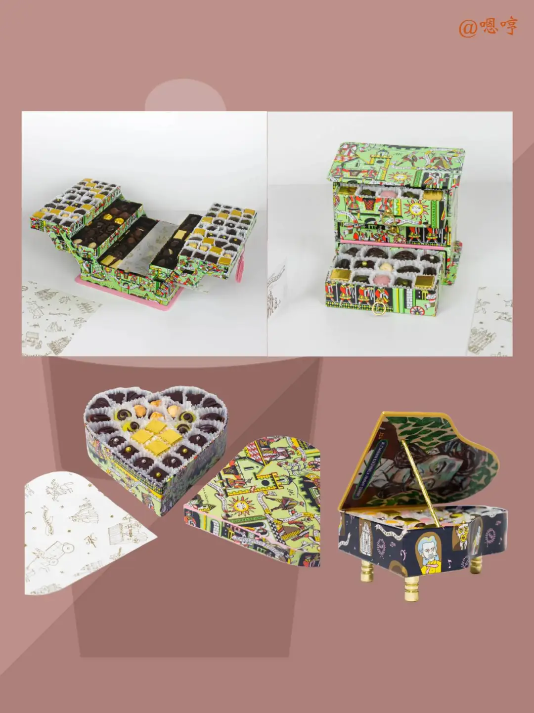 标志性艺术礼盒包装: 以色彩鲜明、几何图案著称的手工纸盒成为品牌标志,兼具收藏价值与艺术属性。