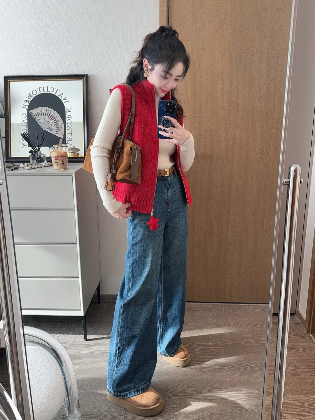 吕燕说,毛衣围巾帽子一上身感觉在装嫩似的……吕燕的这身穿搭,我看了又看,没觉