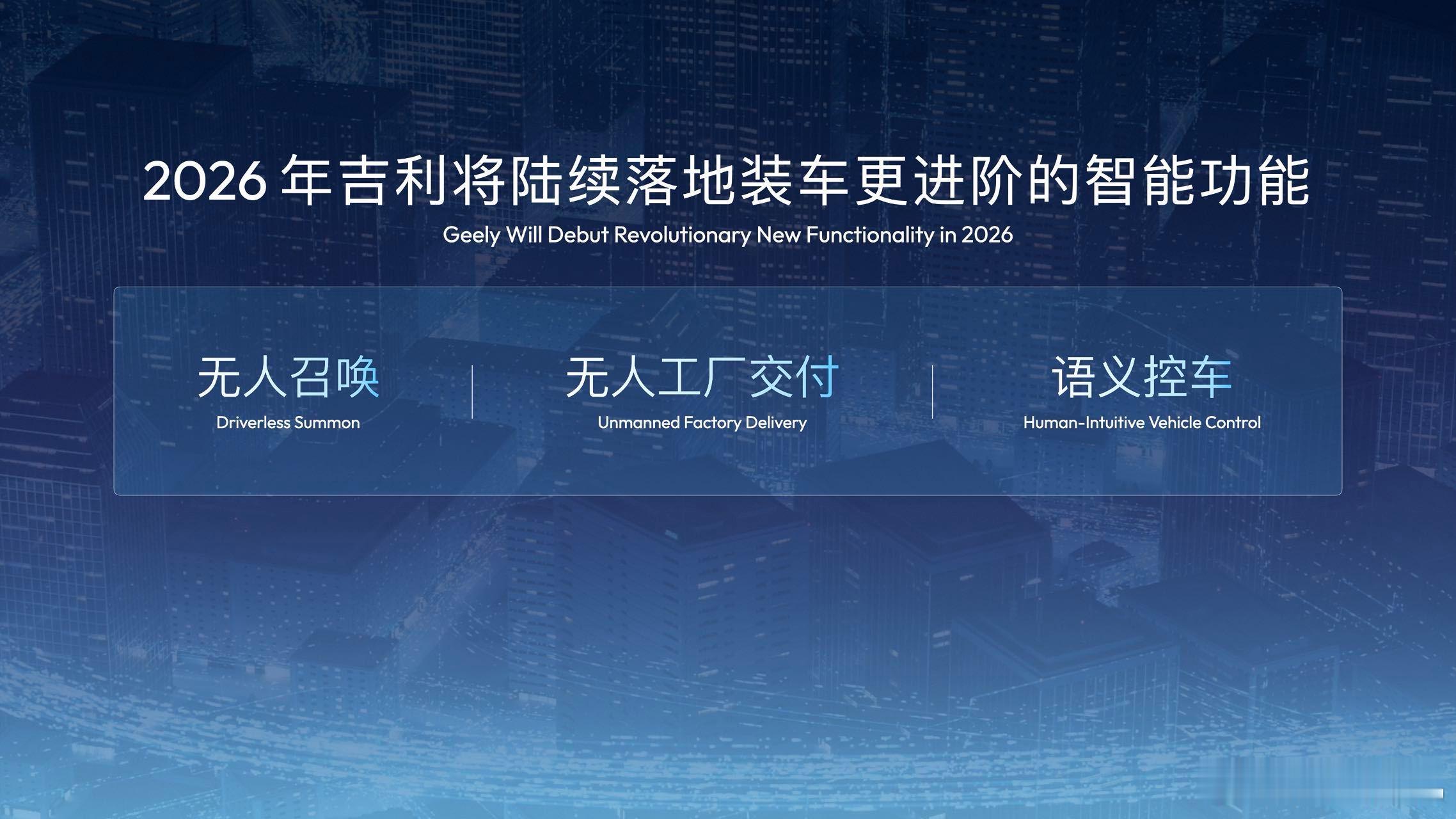 全域AI能给汽车带来什么吉利汽车已经连续三年参加CES展 目前也是全球销量增长最快的车企,2025 年累计销量302 万辆,其中新能源汽车共计 169 万辆。2026 年吉利目标是打造无人召唤、无人工厂交付以及语义控车。全域ai能给汽车带来什么