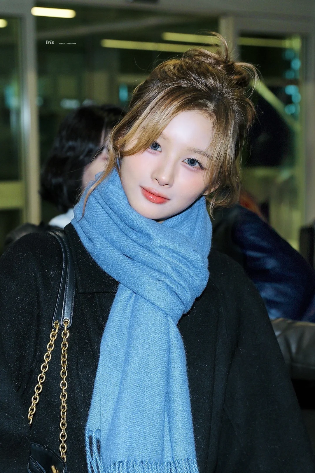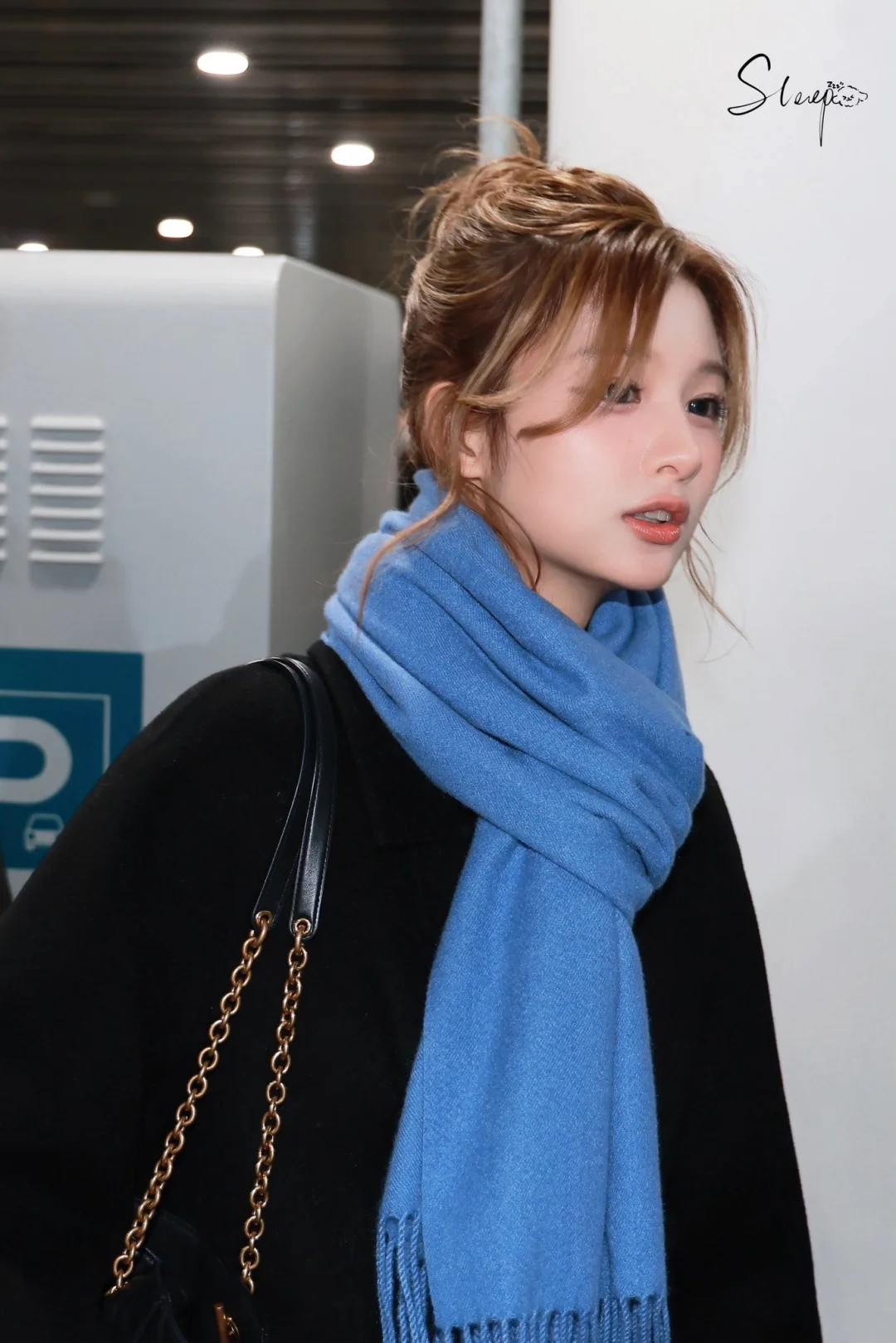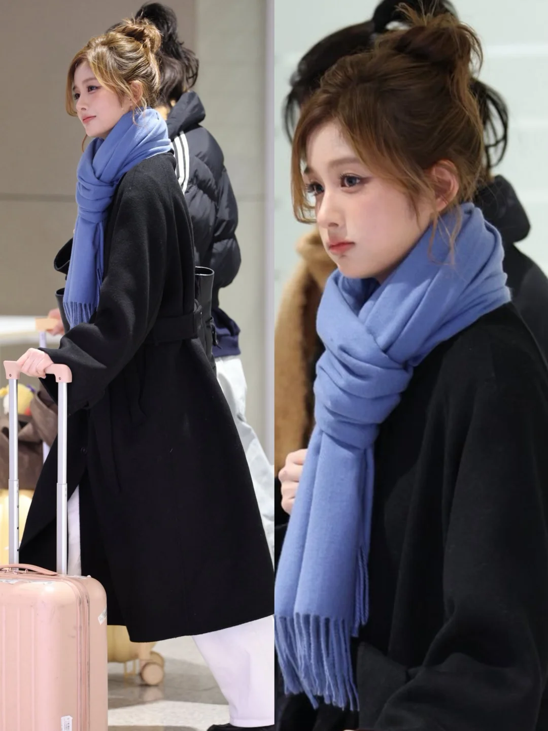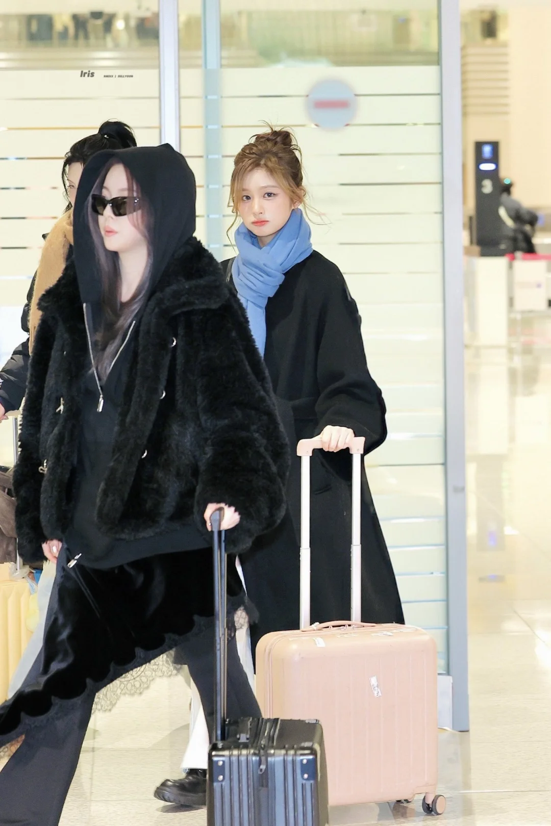雪允这套机场私服真美啊,黑色大衣搭配蓝色围巾和丸子头,可可爱爱的也保暖! 机场穿搭 爱豆同款 女明星私服 女明星穿搭 雪允 图片来源于kun_kun0520 smts708