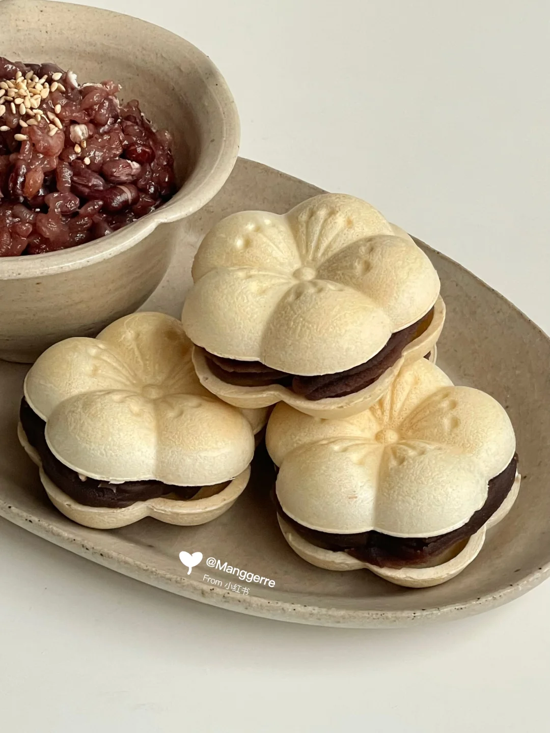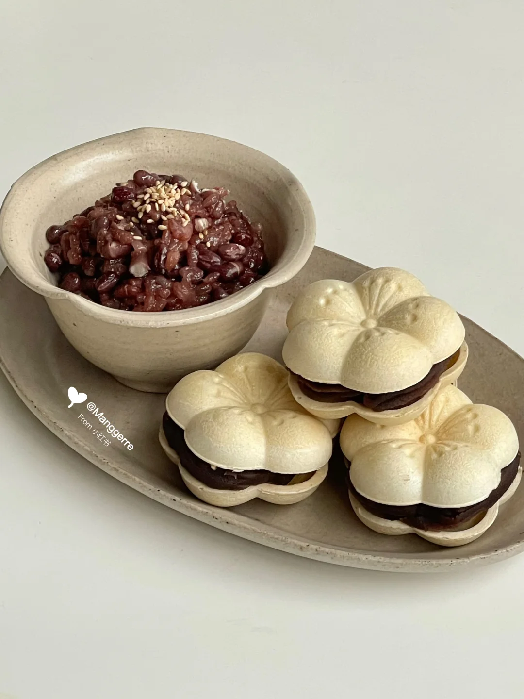 中式早餐|红豆糯米饭➕豆沙梅花烙🫘
