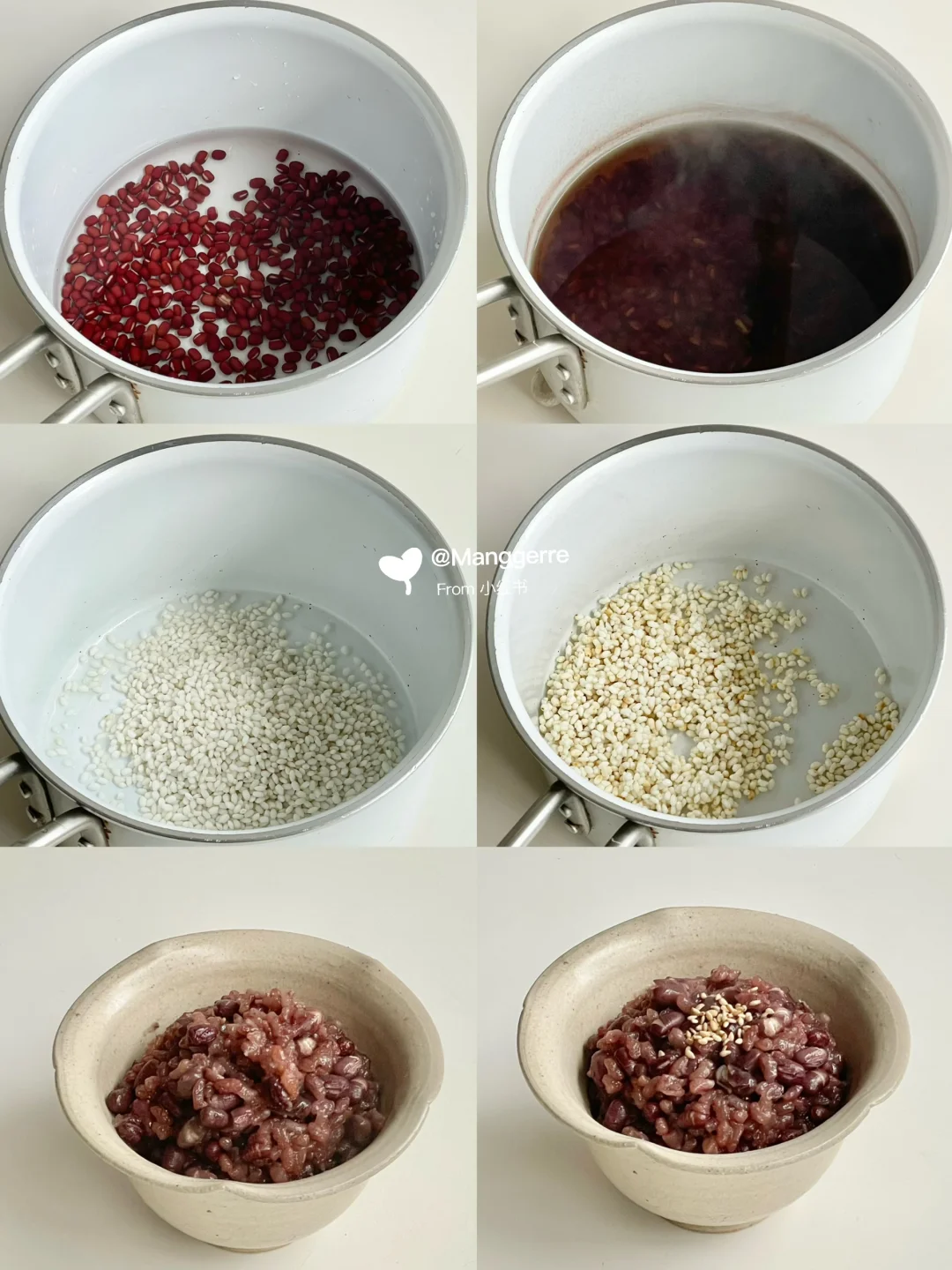 今日分享小寒中要吃红豆糯米饭做法,尝试一下就做成了,是略带咸味的红豆饭,烘焙芝麻是点睛之笔,暖意从手心蔓延。岁暮天寒时,在热气腾腾的红豆饭里渡过。 【食材】: 红小豆50g、生糯米50g、猪油、盐、芝麻 【做法】: 1、红小豆加清水入锅,煮开后10分钟关火。 2、炒锅内多放油,烧热后放少许盐,放生糯米,用小火不停翻炒。 3、炒到糯米微微发黄,把红豆连汤一起倒入,小火焖熟后起锅。 4、炒香芝麻撒在焖好的糯米红豆饭上。