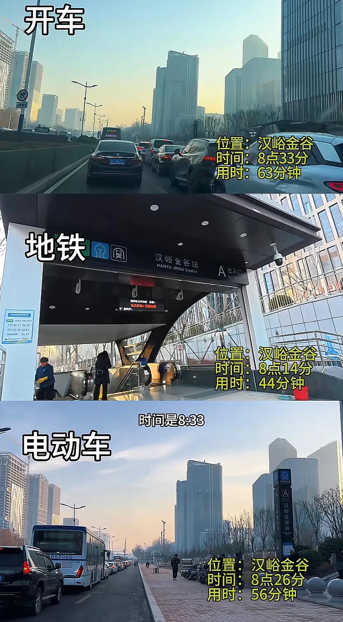 山东济南,地铁四号线开通近两周,市民发现,经十路交通有所改善,车流量比以往少了两到三成,坐地铁出行,比开车和骑电动车都快。 济南地铁四号线开通之后,经十路的车确实少了很多,驾车经过同样的路程,开通后要比开通前节省三分之一的时间。 与此同时,坐公交车的人,比之前少了一半以上,之所以还有一些人选择乘坐公交出行,原因主要有三个: 一是地铁比公交贵,坐公交一天来回4元,坐地铁来回12元,一天多花8元,对于不赶时间的人来说,一般会选择性价比更高的公交。 二是地铁不如公交乘坐便利,进站出站要走挺长一段路,有人下了地铁,还要乘坐公交,算一下时间,比全程坐公交,快不了多少。 三是早高峰时,地铁上的人太多,有人实拍早七点的地铁四号线,真是人挤人;而公交车上,反而座位富余了,可以坐着出行。 除了公交出行,有人还对其他出行方式进行了实测,从和谐广场出发,到汉峪金谷,分别采用乘坐地铁、骑电动车、驾车三种出行方式,分别用时44分钟、56分钟、63分钟。 看来,济南地铁四号线,地铁出行不会堵车,准点到达,速度还快,随着地铁的运行,相信,会有越来越多的人,选择地铁出行。