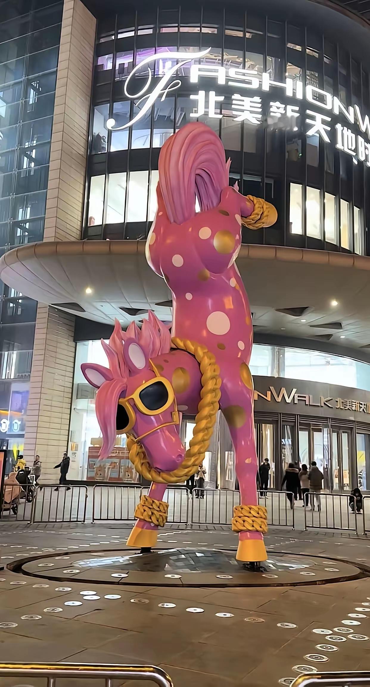 不用说什么谐音,看这个形象就难受,头朝下,屁股尾巴朝天,跳悬崖的样子。 而且前腿下,脖子上,套着沉重绳子,设计师一定是个学渣,文化课差的狠,才跑去学艺术的吧! 这是个什么鸟玩意儿,拆了好,可是银子找谁要呢?
