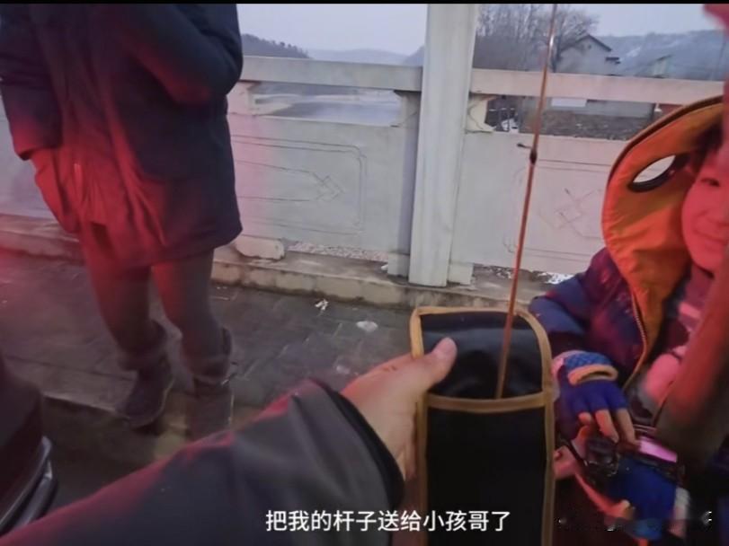 一钓友发视频称,在和女友一起全国游钓的时候,在一个雨雪天偶遇一小孩哥在旁边用简陋的装备钓鱼,期间还给他讲解这条河的鱼情,听说小孩哥的装备有一天被年龄比他大的孩子扔河里了,分别的时候便拿出自己车上的一套溪钓设备送给这个喜欢钓鱼的小孩。 有时候人就是这样,莫道前路无知己,天下谁人不识君,遇到与自己志同道合的人,加上对方又热心,难免会生出惺惺相惜的情愫,送上对方实用的东西,自然也在情理之中了。