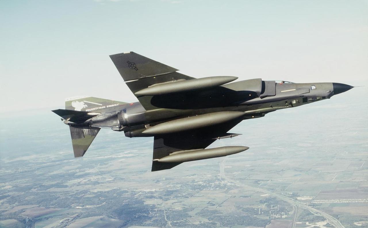 美国RF-4C“鬼怪Ⅱ”侦察机 RF-4C“鬼怪Ⅱ”(Phantom Ⅱ)侦察机是美国麦克唐纳公司以F-4“鬼怪Ⅱ”战斗机为基础改装而成的无一款武装照相侦察机。1963年8月,RF-4C的原型机首次试飞,同年开始批量生产。麦克唐纳公司一共生产了503架RF-4C侦察机,最后一批于1973年12月交付。除美国空军使用外,西班牙和韩国等国也采用了RF-4C侦察机。 RF-4C侦察机使用专业的照相、侦察器材替换了F-4战斗机的武器和雷达设备,两者在外形上的最大区别是RF-4C侦察机具有更长更尖的机鼻,里面安装了照相机、地形测绘雷达、红外影像设备等。RF-4C侦察机装有为夜间侦察而设的照明弹发射系统,安装在后机身上部的液压盖板下。最初的RF-4C侦察机没有安装武器,后来加装了AIM-9“响尾蛇”短程空对空导弹作为自卫武器。