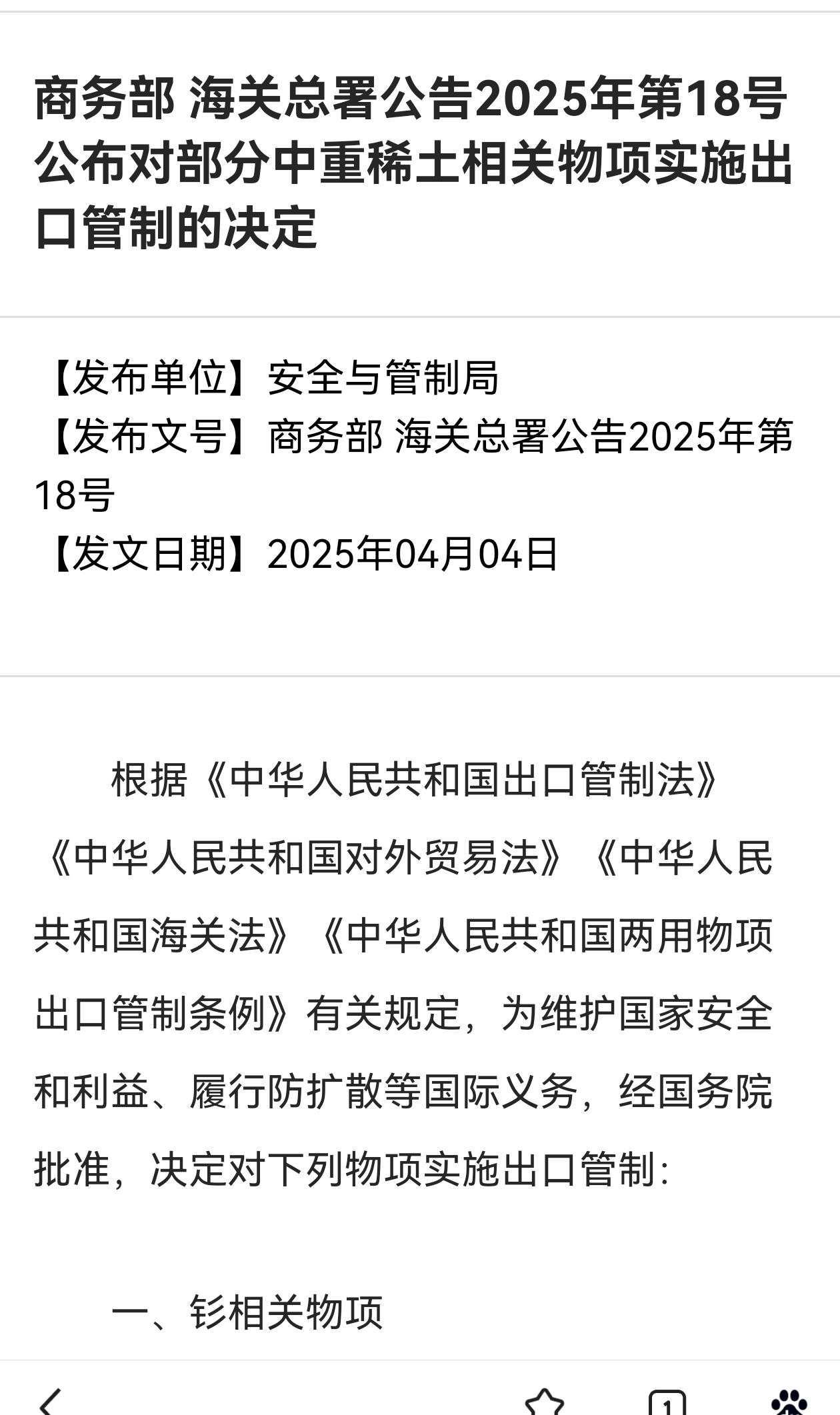 【高市早苗求锤得锤!又被高志凯先生言中!】 据可靠消息,鉴于近期高市早苗政府一系列在台湾问题上的极端恶劣表现,中国已有计划——将针对性地收紧去年4月4日列管的中重稀土相关物项对日本的出口管制许可审查。 就是说此次是专门收紧针对于日本的中重稀土出口管制。 中国商务部、海关总署公告2025年第18号列管的7种中重稀土相关物项: ●钐相关物项 ●钆相关物项 ●铽相关物项 ●镝相关物项 ●镥相关物项 ●钪相关物项 ●钇相关物项 中重稀土,是高科技和战略性产业的核心材料,主要应用于永磁材料、国防军工、新能源、高端制造等领域,其独特性能在高温稳定性、磁性能和抗腐蚀性方面不可替代。 ●武器制导系统:稀土永磁材料用于导弹制导、雷达和声呐设备,确保精准打击和信号稳定性。 ●隐身技术与结构材料:稀土涂层可吸收雷达波,用于隐身战斗机;钇镁合金等能提升飞机发动机叶片和航天器承力结构的耐高温性。 ●电动汽车与风力发电:每辆新能源汽车需5–10公斤稀土磁体驱动电机,单台风力发电机需超600公斤磁体实现高效电能转换。 ●节能照明与通信:铽(Tb)激活的绿色荧光粉用于LED照明;铒(Er)在光纤通信中放大信号,支撑5G网络传输。