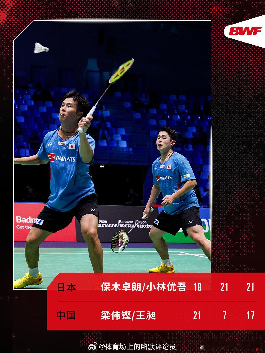 首轮赛况🔥保木卓朗/小林优吾2-1梁伟铿/王昶梁王组合遭日本组合逆转,止步首轮。 ()