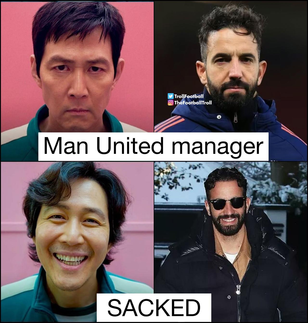 【阿莫林年轻20岁】从曼联下课的阿莫林被记者拍到和妻子一同离开柴郡的住处,阿莫林不再神情紧张、愁容满面,而是容光焕发,和记者热情打招呼、竖大拇指,仿佛年轻了20岁😂! 足球搞笑媒体Troll Football发表了一张图(图3),调侃了阿莫林下课前后精神状态的对比。曼联