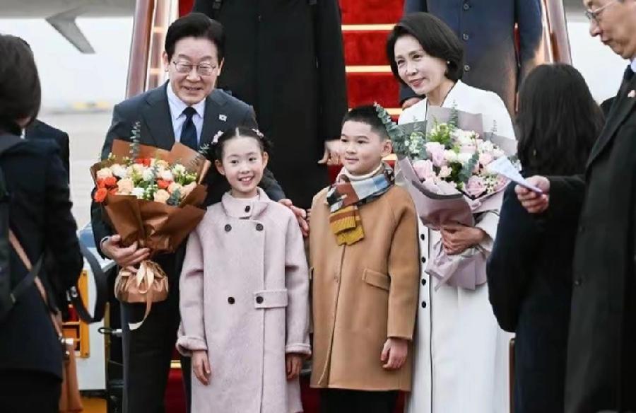 李在明夫妇真喜欢小朋友,抵达上海机场,我们的两位小朋友上前献花,李在明微笑弯腰主动与小女孩握手,还轻推着对方,让小朋友站在中间,四人合影非常有爱!在北京机场,在韩侨晚宴,无论是中韩小朋友献花,夫妇俩都面带微笑,与他们友好互动!来源于民间,亲民总统、夫人!