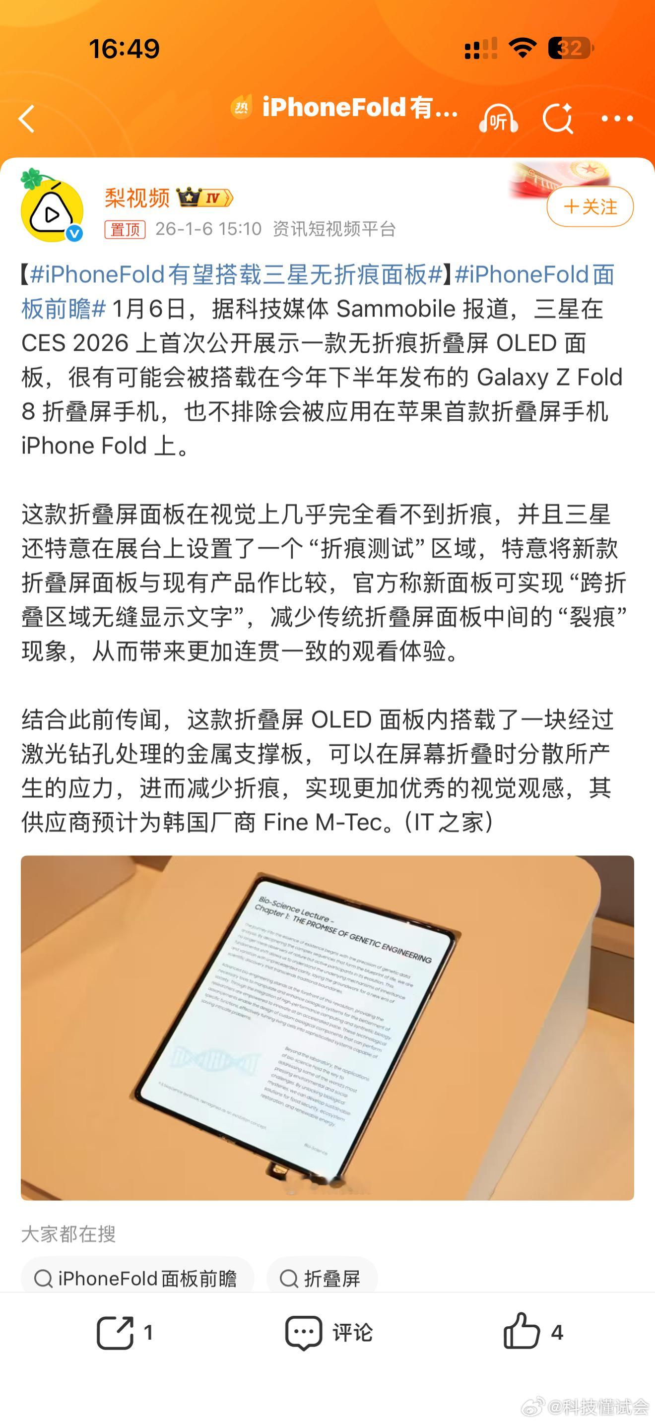 iPhoneFold有望搭载三星无折痕面板真的能做到“无折痕”?那确实得好好期待一下了,不过价格应该也会很美丽~