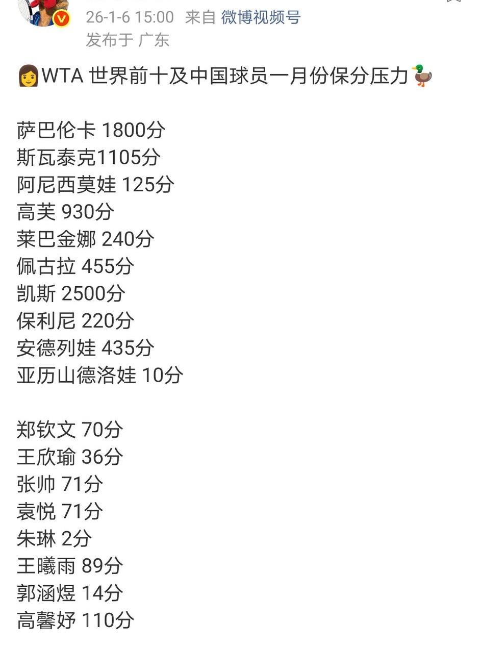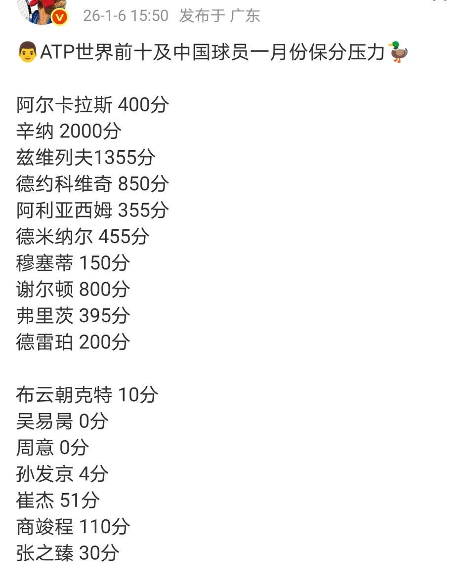 ATP香港250赛首轮,商竣程6-4/6-4科梅萨纳。下轮对阵索内戈。小商拿到25分/12285美金。即时排名347位。商竣程1月保分压力巨大,有110分需要去保。 WTA 布里斯班 500 赛次轮,张帅错失第二盘4-1的领先,3-6/5-7不敌莱巴金娜。 1月份张帅有71分需要去保。