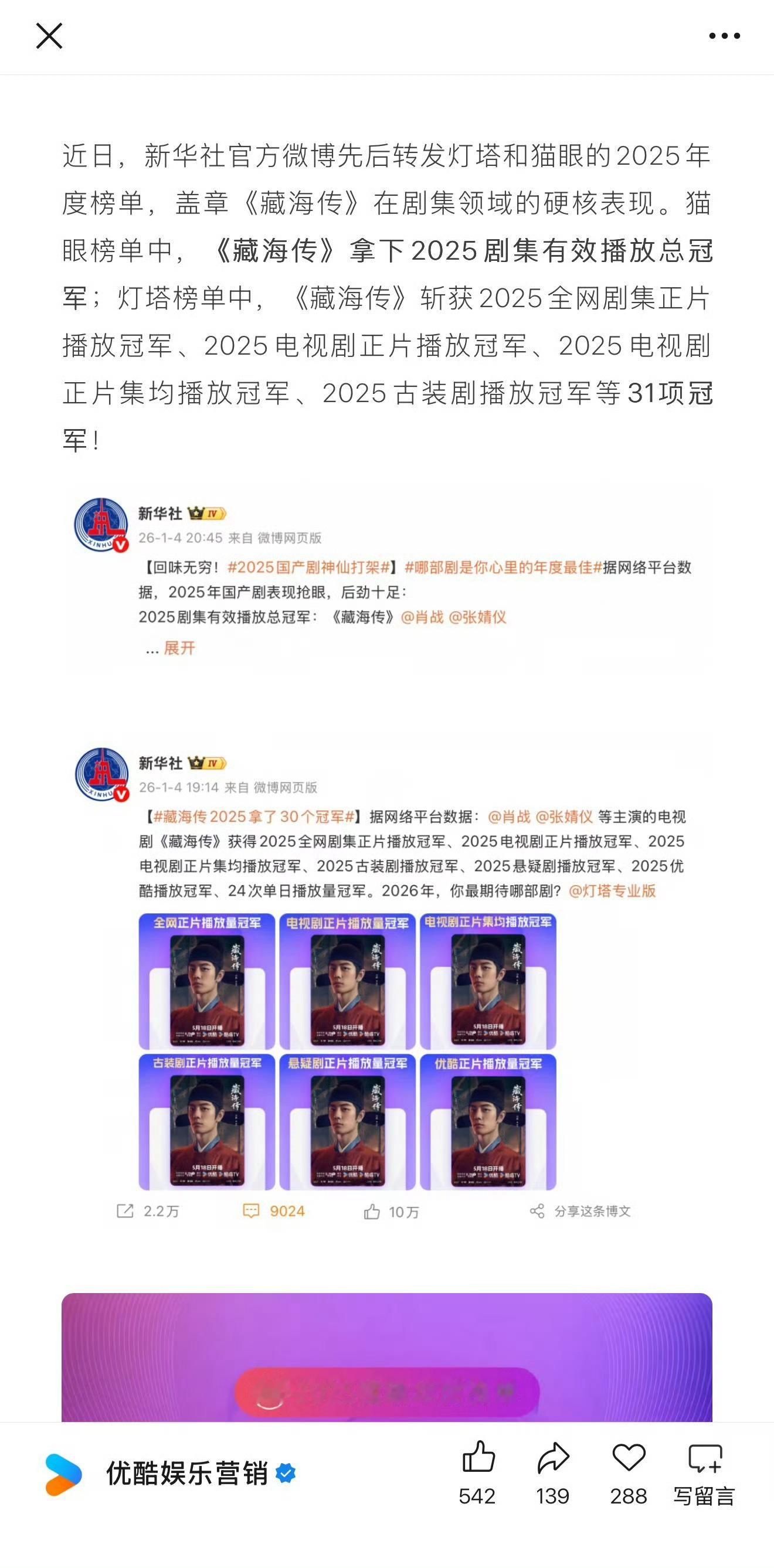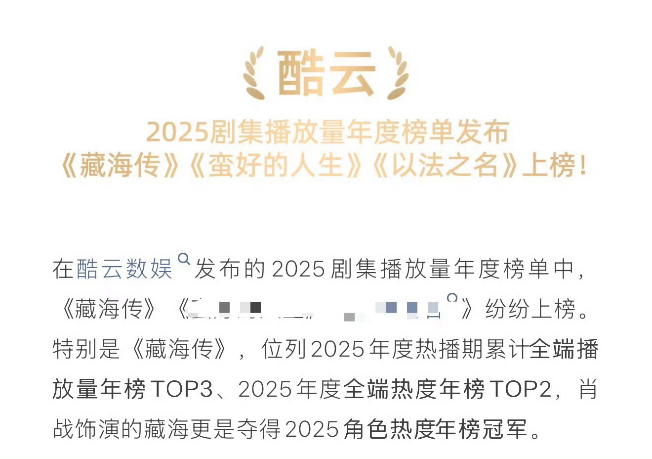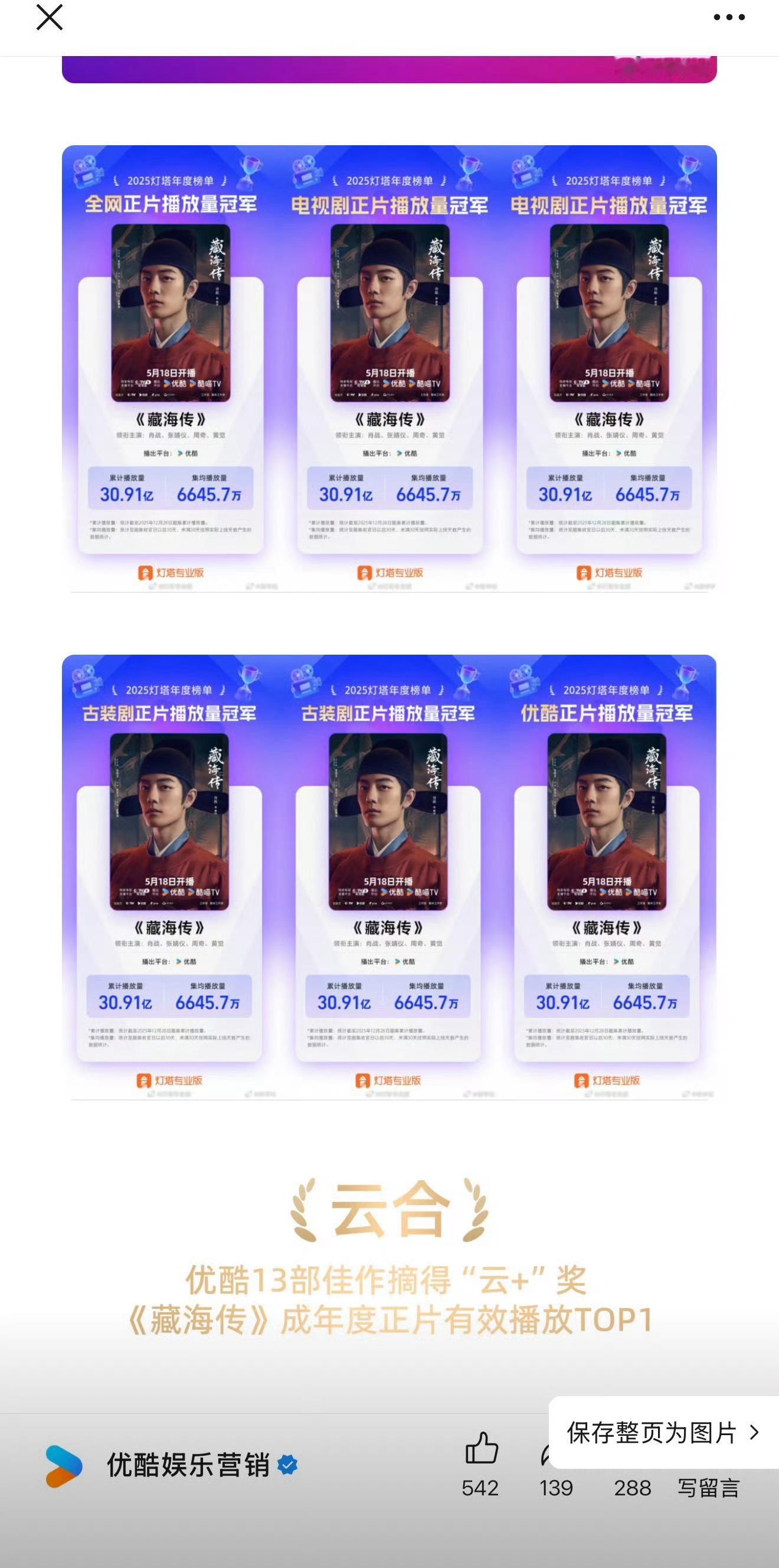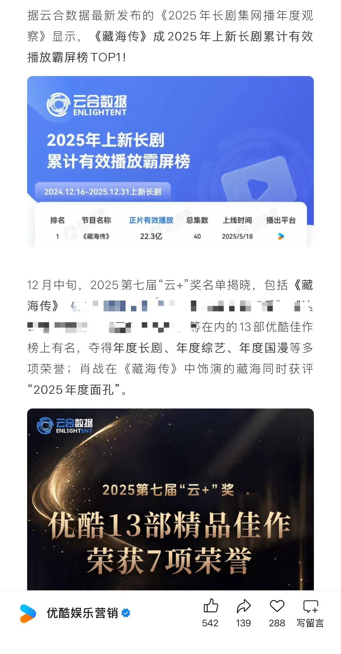 优酷刚发的25年总结盘点,大篇幅夸《藏海传》剧王,剩下夸其他剧,就是没有《长安二