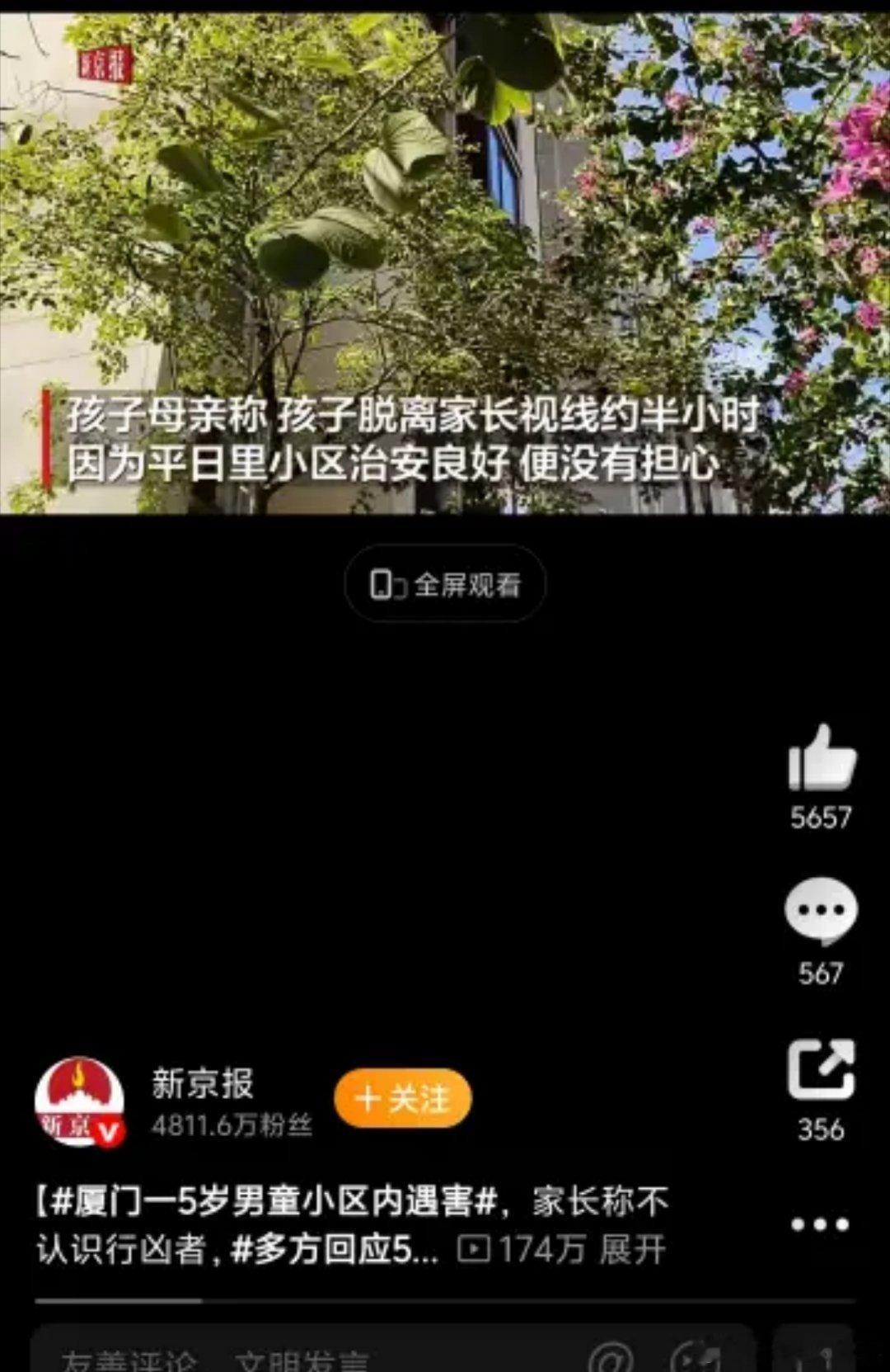 厦门一5岁男童小区内遇害真的,看好自家孩子有时候觉得我看我儿子太紧从来不让他自己