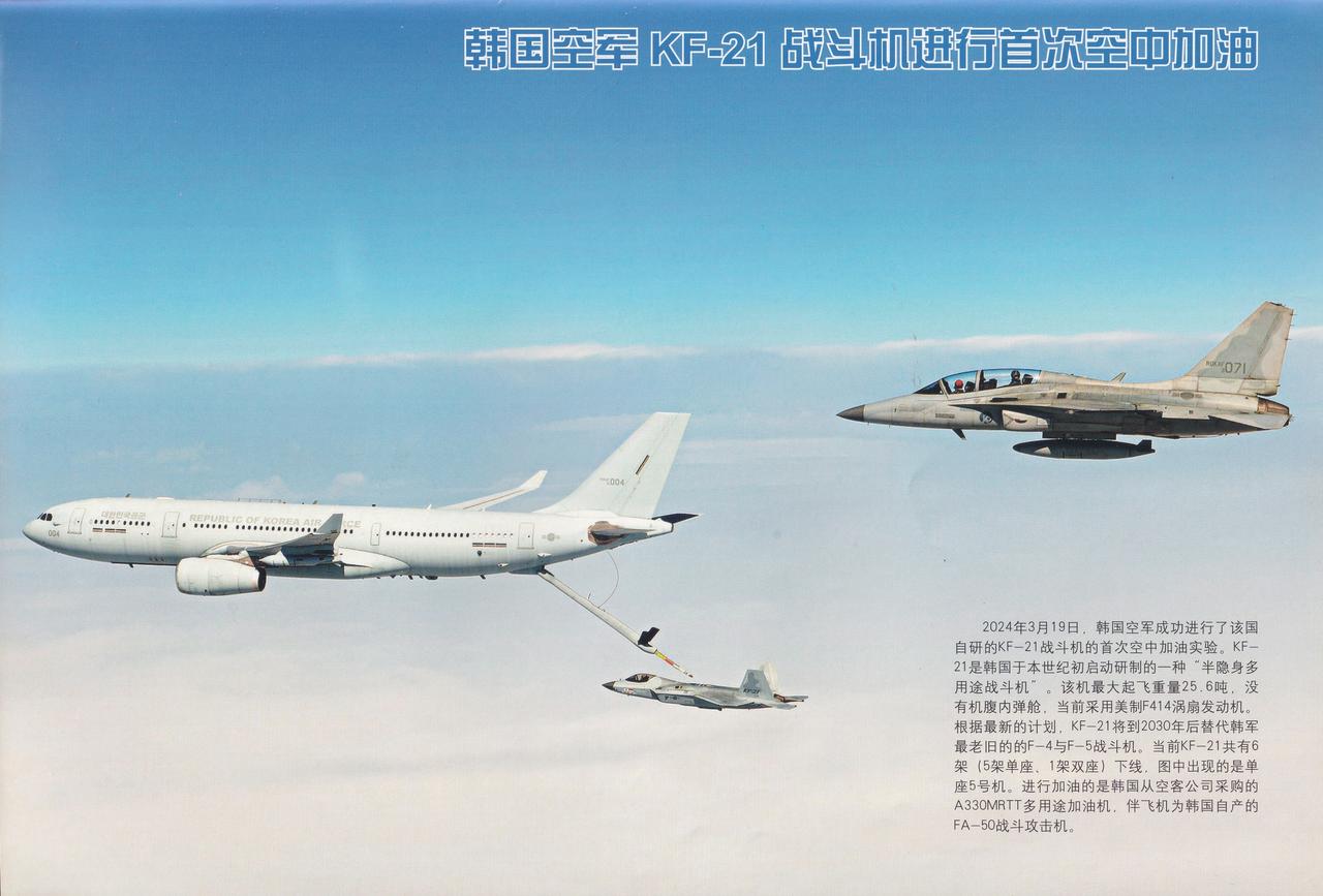 高清军事插图欣赏(《兵器》杂志2024年05期),点击放大观看,在插图中丰富军事认知。 图一、韩国空军KF-21战斗机进行首次空中加油 2024年3月19日,韩国空军成功进行了该国自研的KF-21战斗机的首次空中加油实验。KF-21是韩国于本世纪初启动研制的一种“半隐身多用途战斗机”。该机最大起飞重量25.6吨,没有机腹内弹舱,当前采用美制F414涡扇发动机。根据最新的计划,KF-21将到2030年后替代韩军最老旧的F-4与F-5战斗机。 当前KF-21共有6架(5架单座、1架双座)下线,图中出现的是单座5号机。进行加油的是韩国从空客公司采购的A330MRTT多用途加油机,伴飞机为韩国自产的FA-50战斗攻击机。 图二、印度尼西亚陆军陆军 “虎”式中型坦克 “虎”式是印度尼西亚陆军工业公司与土耳其FNSS公司联合研制的一型坦克。该项目最早被称为“现代化中量型坦克”(MMWT)。这种坦克结合了FNSS公司在研的ACV-30型履带式战斗车底盘与比利时科克里尔公司的3105炮塔,搭载523千瓦的C13柴油机。其炮塔使用105毫米高膛压主炮,配用尾舱自动装弹机。 这种坦克全重35吨,车体全向可防御14.5毫米机枪直射,不能浮渡。当前印尼陆军接收了10辆该型坦克用于测试,位于万隆的印尼陆军工业公司已经开始利用外产零件组装这型坦克。 图三、英国“星光”便携式地空导弹 “星光”是英国肖特导弹公司在冷战末期研制的便携式地空导弹,最大射程4千米(改进型7千米)。该导弹的设计十分独特,它的战斗部是三枚形似飞镖的无动力动能杀伤器,使用激光驾束制导。 发射时,主发动机将杀伤器推动至马赫数4的高速后,杀伤器与发动机脱离,之后每一枚杀伤器上的导引系统控制杀伤器飞向目标,最终引爆装药。由于使用驾束制导,射手在导弹完成攻击前要始终保持对目标发射激光束,因此“星光”不是一型“发射后不管”导弹,且不具备超视距全天候作战能力。 图中参加北约快反部队演习的英军士兵正与靶机联演,其瞄准装置上方的八木天线可与靶机互动获取瞄准时间,从而实现模拟检靶。 图四、BAE系统公司向美军交付的首辆AMPV炮塔型自行迫击炮 AMPV是美军于本世纪初启动的下一代地面战斗车(NGCV)采购项目中的一个子系列,它旨在研发一种通用底盘,取代入役于越战时代的M113装甲车家族。图中的样车利用“布雷德利”底盘搭载了芬兰帕特里亚公司的NEMO迫击炮系统。 NEMO是“阿莫斯”120毫米迫击炮家族的最新智能轻量化型号,火力系统全重小于2吨,采用无人自动装弹炮塔,结构十分紧凑,还具有直瞄与多发同时弹着功能。 之前,美国国防部曾敲定采购同底盘敞开布局的M1287自行迫击炮。比起M1287,NEMO型AMPV显然更先进。但更高的单价将使得这一计划陷入更深的经济困局。 图五、在法国进行特战演习的西班牙陆军外籍军团士兵 2024年2月,西班牙陆军外籍军团驻比亚托尔的“哥伦布”战斗群来到法国上法兰西大区埃纳省的法国陆军锡索讷城市战训练中心,使用法军装备与法国陆军外籍军团第1工兵团进行了联合演习。 图中的前方西班牙士兵手持加装有激光模拟器的法玛斯步枪,后方士兵手持AT4火箭筒。西班牙的外籍军团当前共有5000人规模,兵员来自西班牙本土与中美洲地区。他们当前的主力步枪是G36E。 图六、朝鲜人民军M2020主战坦克 2024年3月13日,朝鲜领导人金正恩来到人民军“汉城柳京守”105坦克师观摩实弹演习,期间他还体验驾驶了一辆曾于2020年亮相的新型主战坦克。这型坦克当前被西方媒体称为M2020型,早先韩国媒体称其为“天马虎”。 在此次报道的画面中,可以见到该系列坦克似乎采用了“天马”系列绰号。与画面后方的“天马-216”坦克相比,M2020采用7对负重轮与双插销履带,T-62坦克的外形特征基本完全消失。它的炮塔左侧加装有“凤凰”反坦克导弹发射器,独立车长镜。从舱口位置分析,依旧为三人炮塔布局。其炮塔外壳还有疑似主动防御系统的结构部件。 图七、菲律宾陆军装备的以色列造ATMOS 155毫米自行榴弹炮 ATMOS是以色列索尔坦系统公司在上世纪末推出的一款轮式自行榴弹炮,它采用39或52倍径155毫米火炮,发射北约标准弹药,炮尾带有辅助推弹装置,最大载弹量27发。 ATMOS使用的火炮是以色列从芬兰引进技术研发的,发射枣核型弹药射程可以超过20千米,也可使用底排增程弹,最大射程达到了41千米。菲律宾从2021年开始接收搭载52倍径火炮的ATMOS,总量为12辆。 图中出现的ATMOS隶属菲律宾陆军第10炮兵营,当时正在吕宋岛的奥德内尔营进行打靶。近处的火炮刚刚开火,炮身发生后座。但炮班均没有采用防冲击姿势。