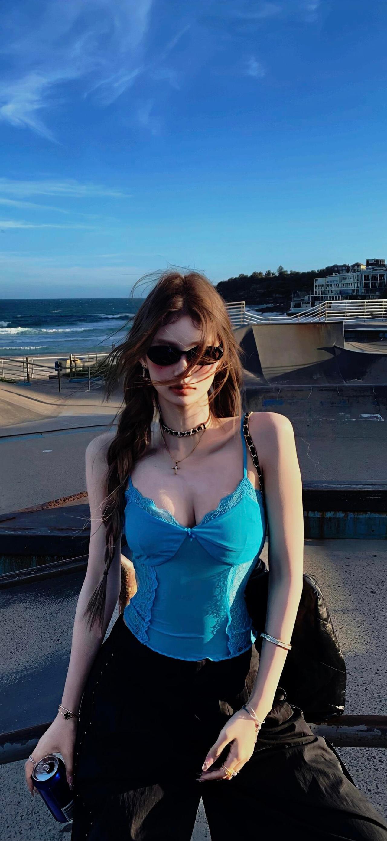 沙漠中的时尚女郎,黑裙与靴子的完美搭配,尽显个性与魅力。冯莫提!