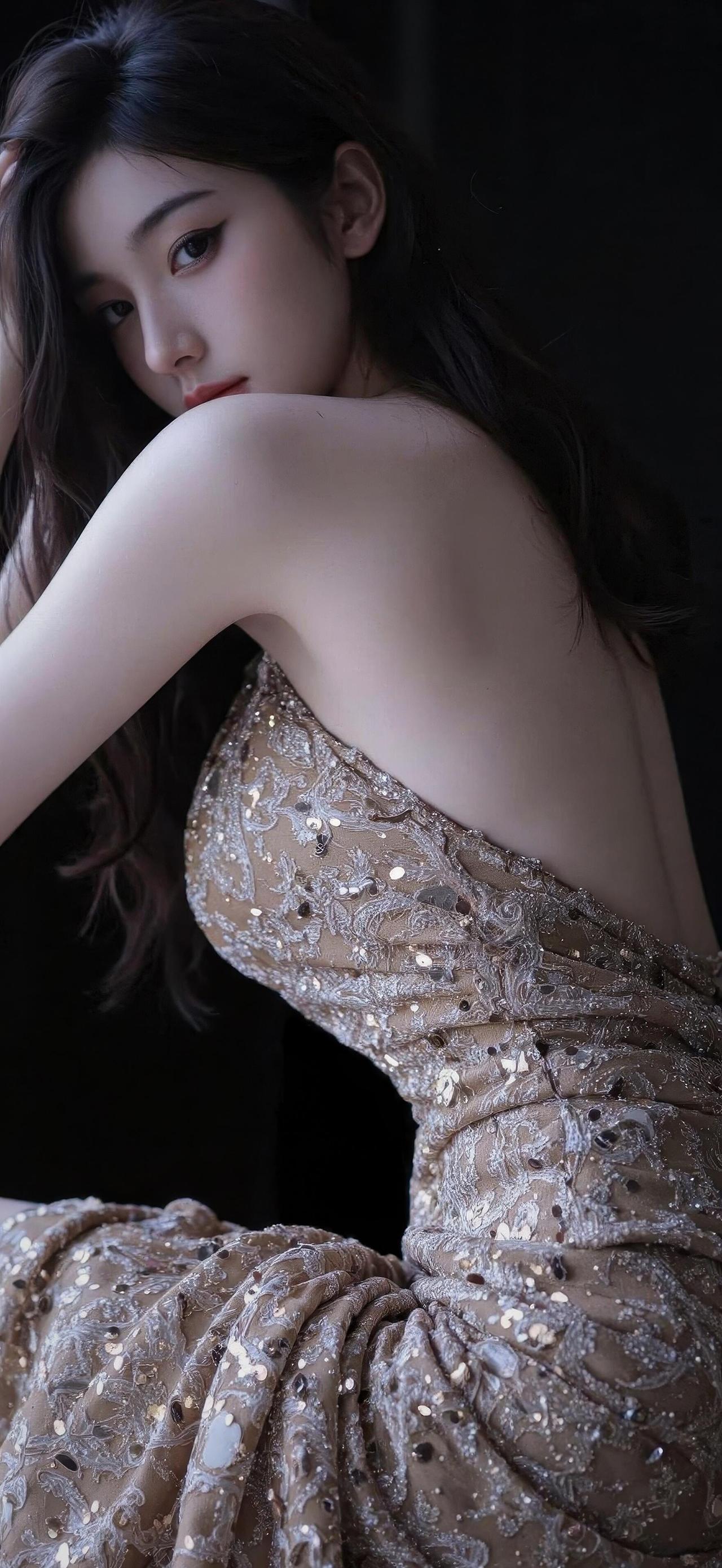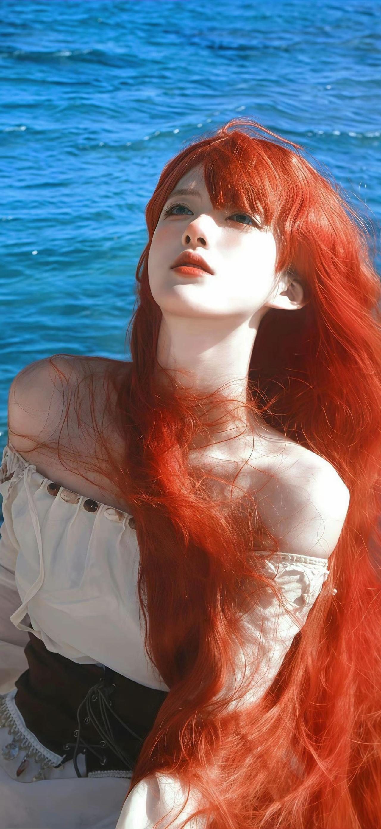 红发少女,性感撩人,黑裙配皮草,时尚大片