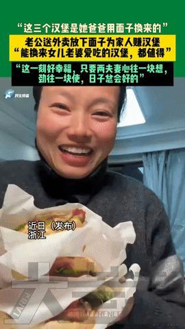三个汉堡里的“面子”与幸福:外卖爸爸的暖心付出,看哭了多少人 浙江的一个小家里,妻子捧着三个汉堡笑眼弯弯:“这是她爸爸用面子换来的。”原来,送外卖的丈夫为了给妻女换她们爱吃的汉堡,放下“面子”拼命跑单要好评。有人觉得“丢面子”,他却憨憨地说:“能换来老婆女儿喜欢的汉堡,值!” 妻子说,虽然他挣得不多,但有好吃的总想着往家带。“只要夫妻心往一处想,劲往一处使,日子总会好的。”这一刻的幸福,藏在汉堡的香气里,也藏在平凡夫妻的相濡以沫中。 你家有没有这样暖心的付出瞬间?来评论区分享